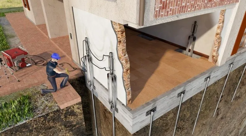 GROUNDFIX® - это малоинвазивная, активная технология свай, в которой используются специальные модульные стальные элементы, собранные и запрессованные в грунт, с помощью гидравлических домкратов, прикрепленных к первоначальной конструкции фундамента с высокопрочными анкерными плитами и растворами. GROUNDFIX® представляет собой структурное решение для более глубокой консолидации фундаментов с целью передачи грузов на более несущие земли.