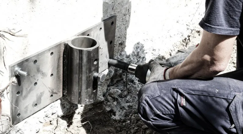 при укладке столба на решетке GROUNDFIX® необходима возможность закрепления и последующего контраста построенной конструкции. Фактически, столб медленно вводится в землю при постоянном давлении с помощью батареи элементов, пока не будет достигнут сплошной горизонт проекта.