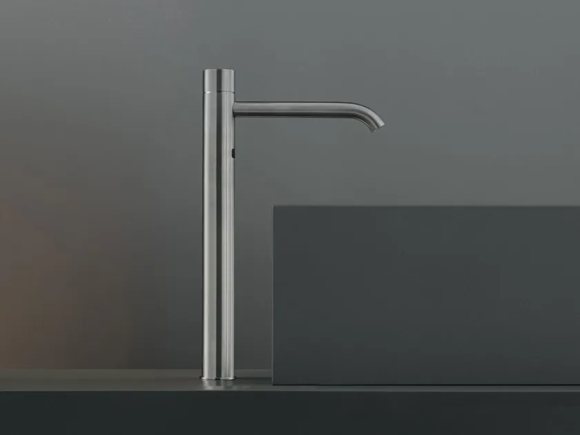 смеситель для столешницы с инфракрасным датчиком присутствия водонепроницаемость IP67 и регулировка температуры доступные отделки: Сатин полированный специальная отделка: X. Light gold P. медь Z. бронза KD. Black Diamondсмесители и датчики из нержавеющей стали AISI 316L оснащены инфракрасной системой обнаружения присутствия на батарейках с напряжением 9 вольт или электрическим током. датчик с помощью многофункционального пульта дистанционного управления можно управлять несколькими датчиками, регулируя к...
