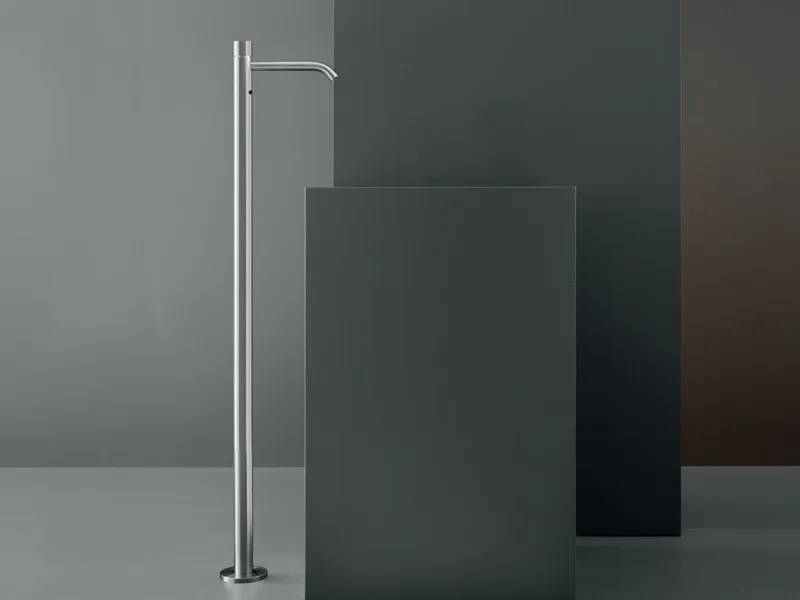 смеситель напольной колонны для умывальника с инфракрасным датчиком присутствия водонепроницаемость IP67 и регулировка температуры доступные отделки: Сатин полированный специальная отделка: X. Light gold P. медь Z. бронза KD. Black Diamondсмесители и датчики из нержавеющей стали AISI 316L оснащены инфракрасной системой обнаружения присутствия на батарейках с напряжением 9 вольт или электрическим током. датчик с помощью многофункционального пульта дистанционного управления можно управлять несколькими дат...