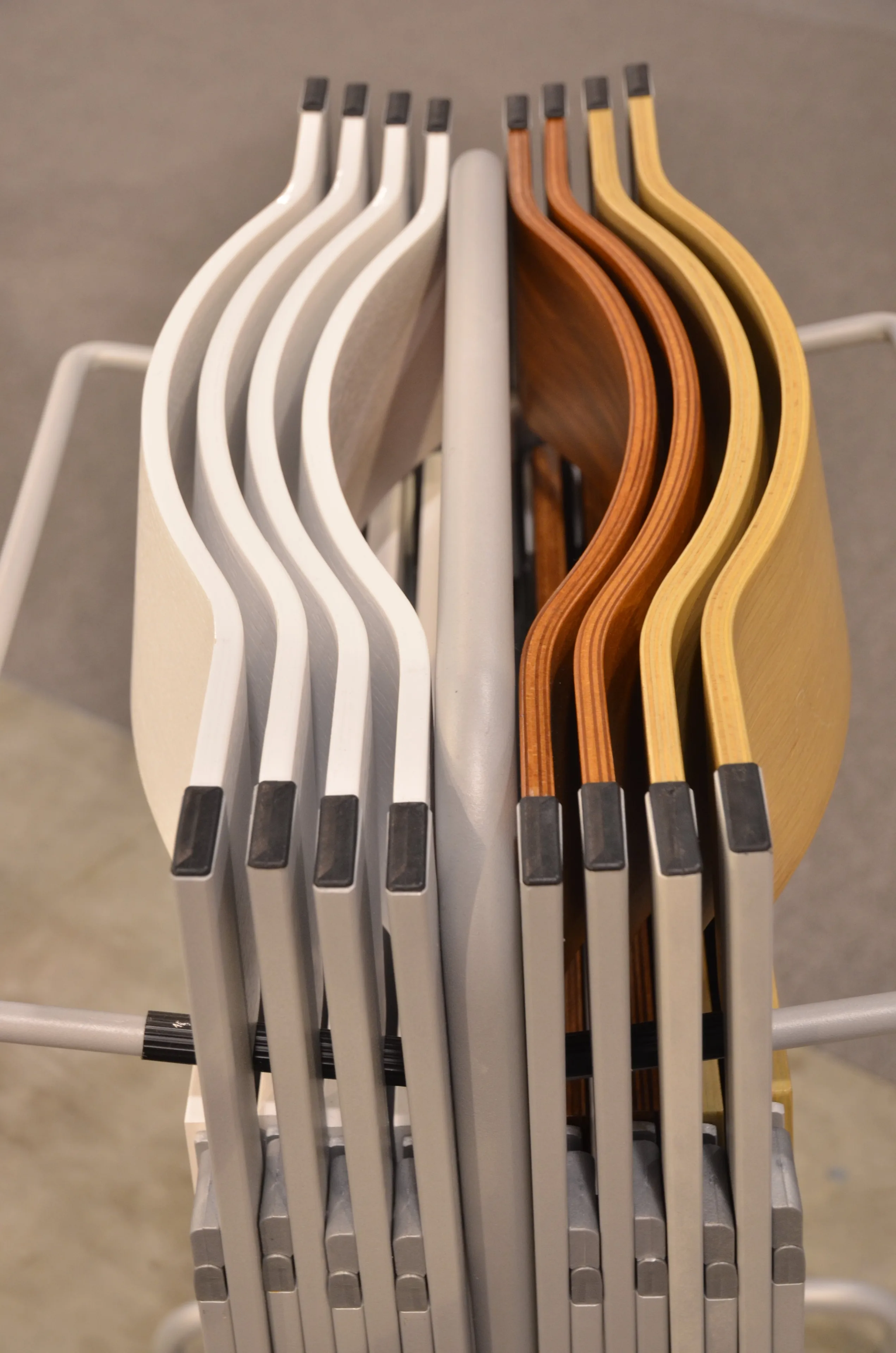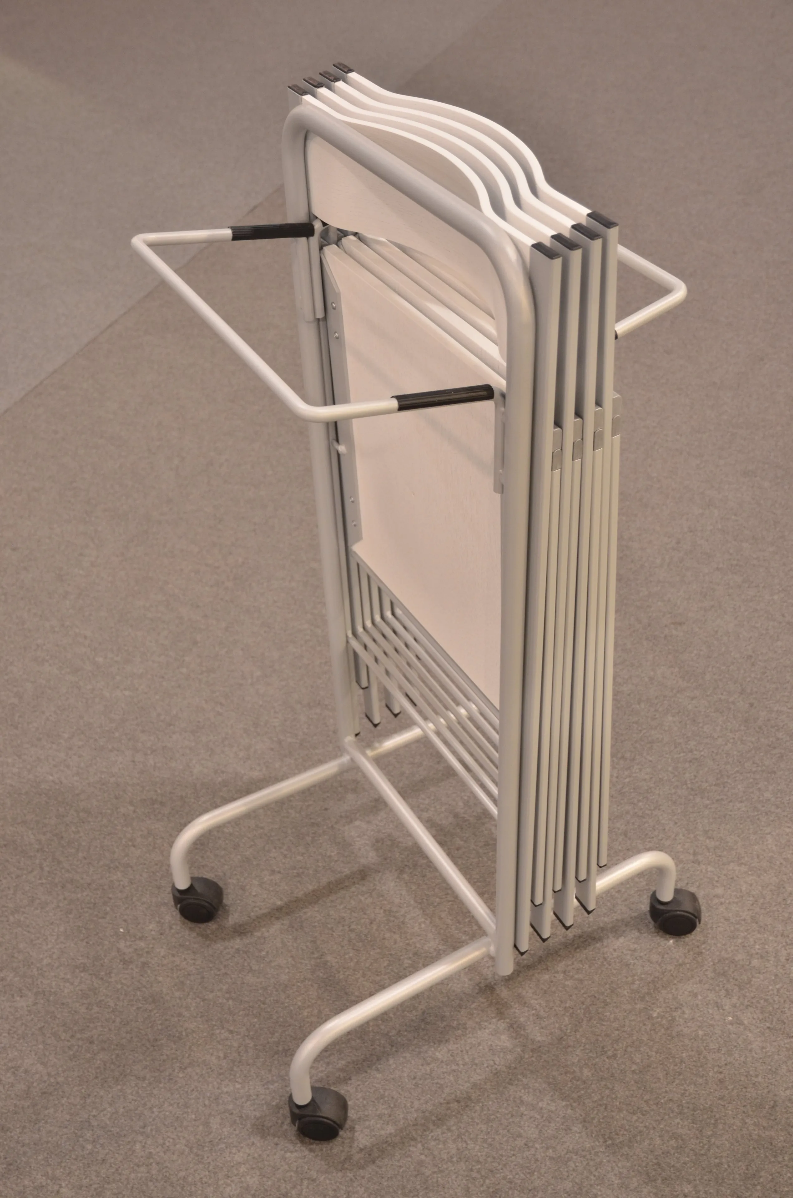 благодаря своей минимальной занимаемой площади тонкий стул может быть оснащен специальными настенными кронштейнами, способными удерживать 4 стула чуть более 10 см или небольшой удобной тележкой-металлической тележкой, которая позволяет держать под рукой 12 стульев и легко хранить их в любом месте.