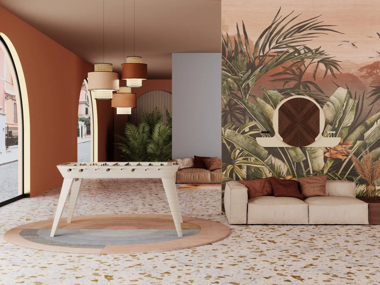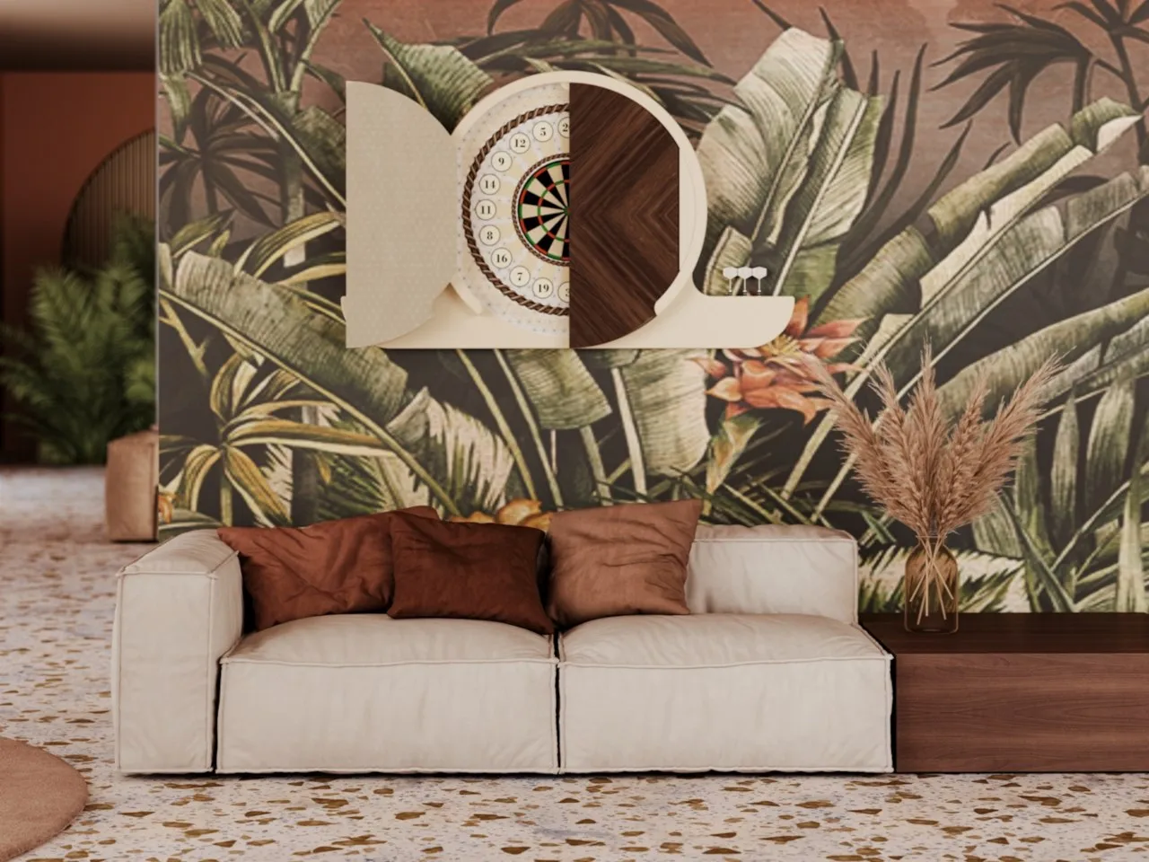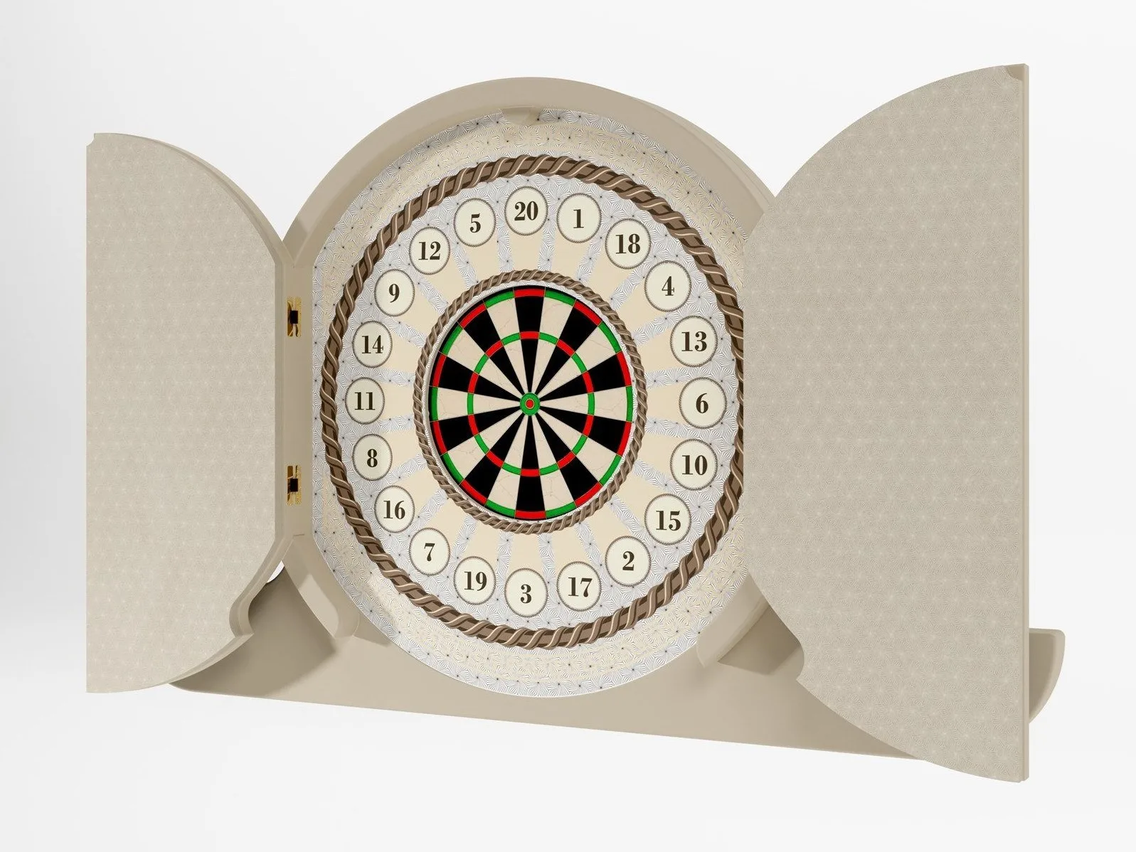 издание 2020 года ARGO представляет собой сдержанный и элегантный элемент декора. Двери обиты эбеновым деревом Макассар с рыбьей костью, что придает мебели очень современный вид. Интерьер остается неизменным: цель-Африканский сизаль, натуральное волокно, которое не позволяет создавать отверстия. Штампованная резина с геометрическим рисунком, размещенная вокруг цели и внутри створок, защищает предмет мебели от неудачных бросков.