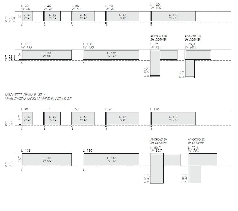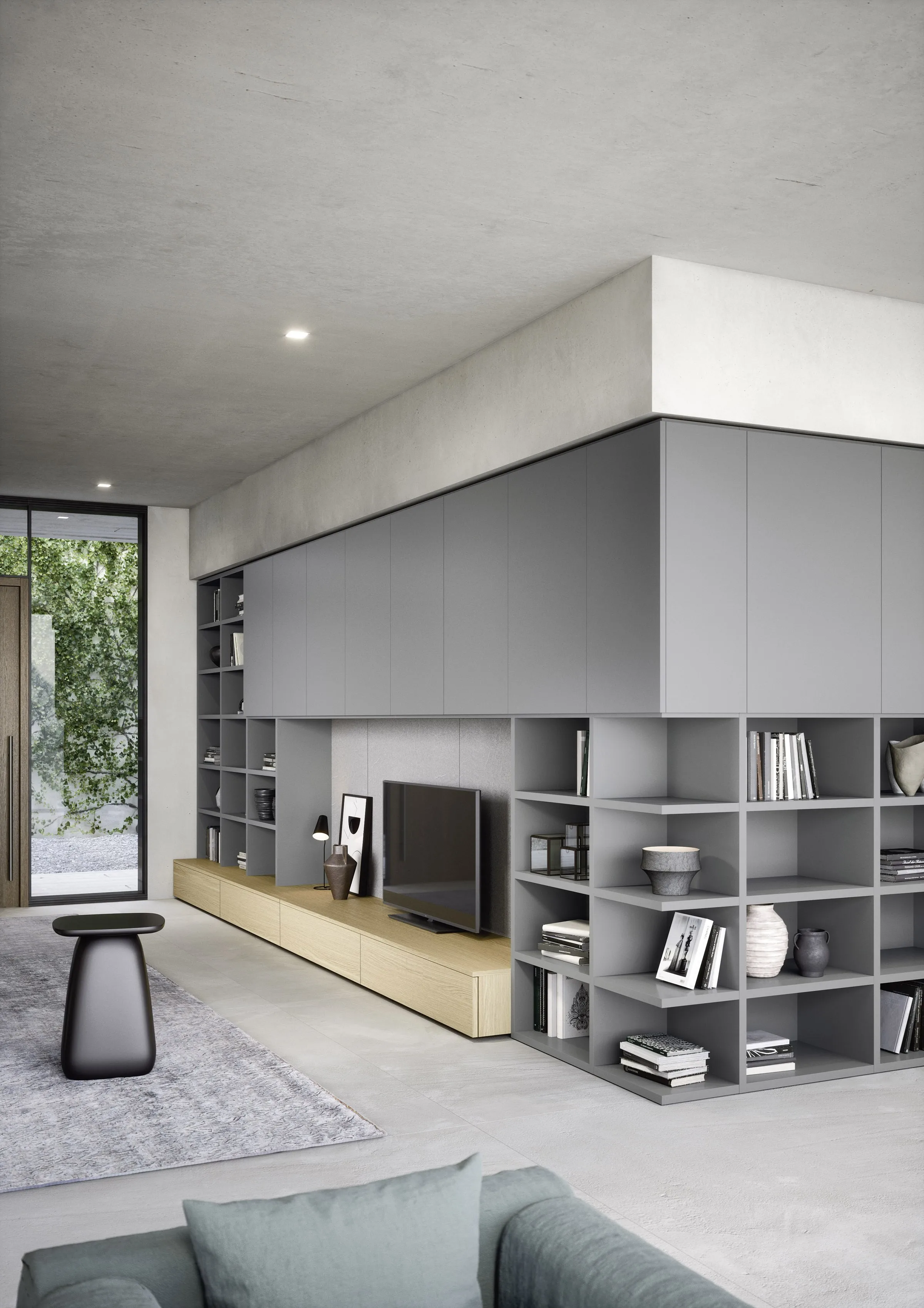 помимо модульности его элементов, еще одной отличительной чертой, которая придает Wall 30 универсальность, является широкий спектр отделки, к которой в этом году добавляется высококачественный дубовый шпон в шести элегантных естественных оттенках (светлый дуб, мед, земля, серый, древесный уголь и белый), с добавлением нового белого и черного цветов., идеально подходит для интерьеров в минималистском стиле и с современным вкусом. Мебельные решения, предлагаемые Wall 30, практически бесконечны. Основная конструкция, состоящая из полок и боковых панелей со спинкой или без нее, может быть установлена в широком диапазоне различных конфигураций: архитекторы и дизайнеры интерьеров имеют возможность выбора между различными версиями-наземными, настенными мостами или сидячими поверхностями (на основании контейнера); возможность придать книжный шкаф более динамичный вид с использованием трех различных глубин и диапазона высот, до 290 см, тем самым решая проблемы, которые может представлять нестандартная среда; наконец, выбор отделки и цветов, которые можно смешивать и сочетать друг с другом на полках, спинках и боковинах, а также ряд систем открывания.