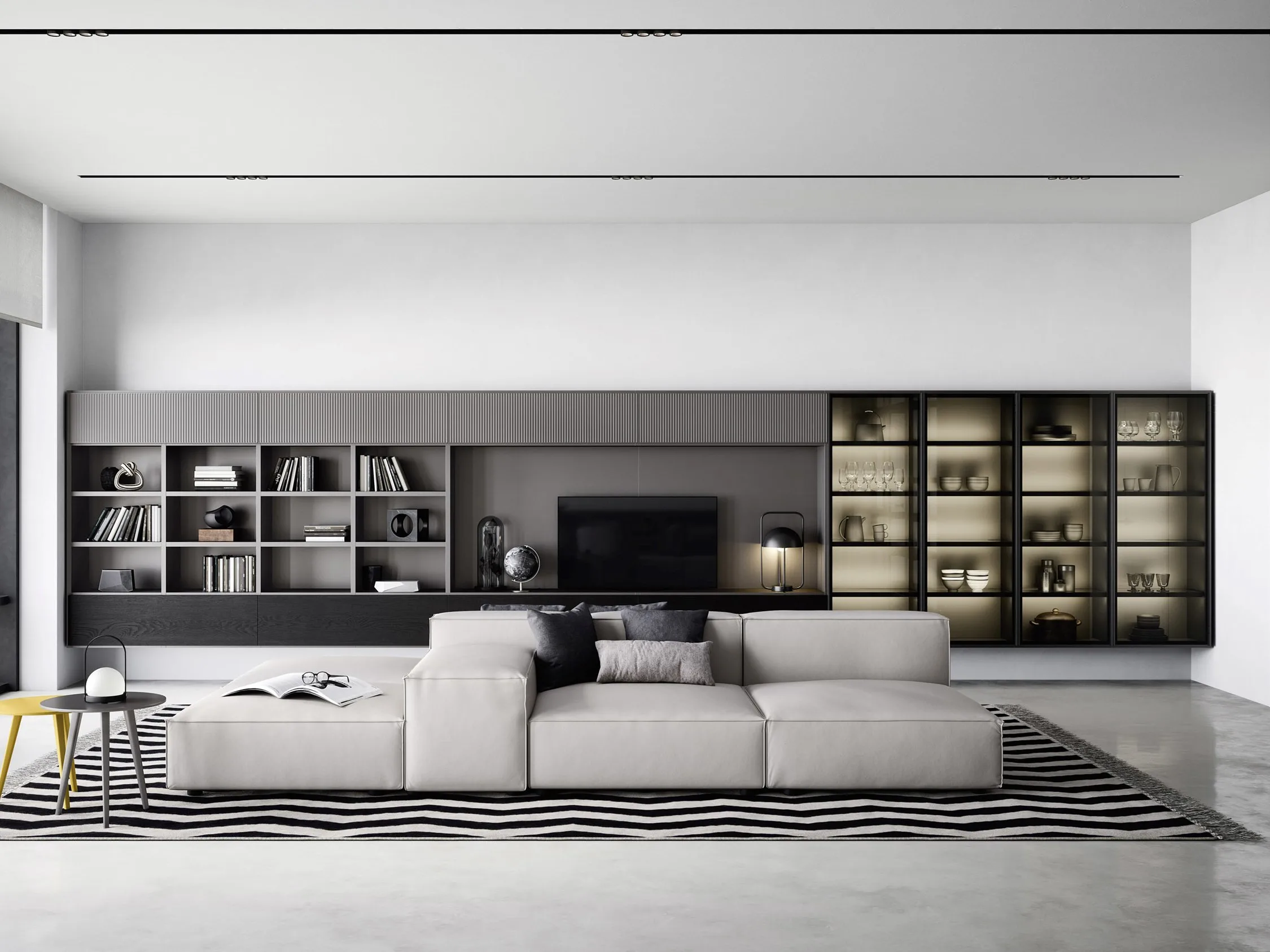 Wall 30 это оборудованная стена Novamobili, которая отвечает новым требованиям нашего образа жизни: книжный шкаф эволюционировал и стал центральным элементом мебели, идеально отвечая функциональным, эстетическим и оснащенным требованиям. Wall 30 - это система, состоящая из нескольких блоков, которые создают модульную, полную и гибкую конструкцию. Конечный продукт-это книжная полка, которая может быть адаптирована к любым потребностям с точки зрения размера, выбора материалов и детали, предлагая универсальное использование, независимо от того, предназначена ли она для размещения на стене или в центре комнаты.