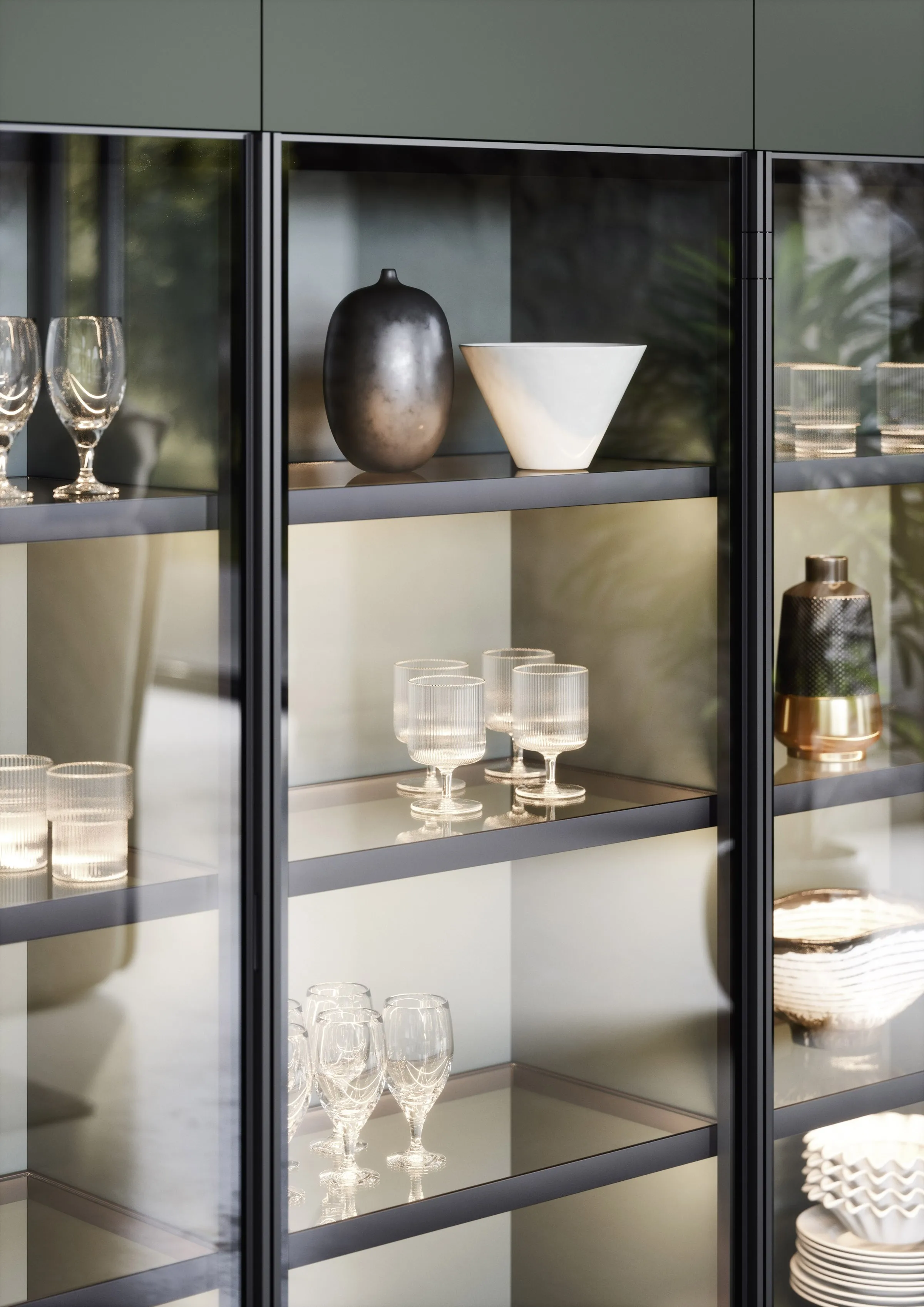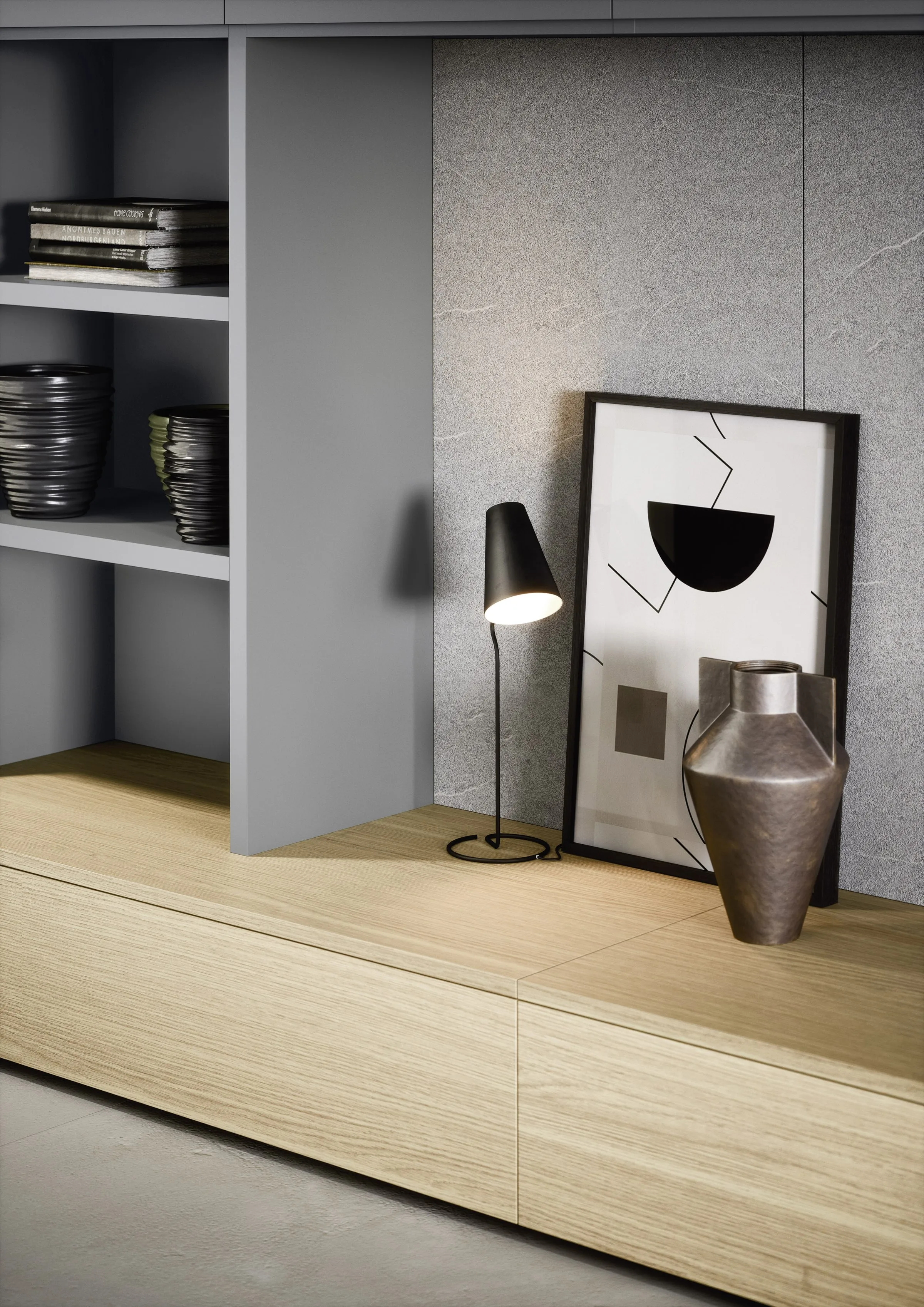 каждая деталь системы Wall 30 была разработана Novamobili, чтобы сделать книжный шкаф центром окружающей среды, не в последнюю очередь системой внутреннего освещения книжного шкафа. Как и полки, боковые стенки также могут быть дополнительно усилены светодиодными лампами, адаптируемыми к высоте различных модулей, в то время как большие ящики могут быть оснащены освещением с автоматическим датчиком который загорается при открытии ящика.