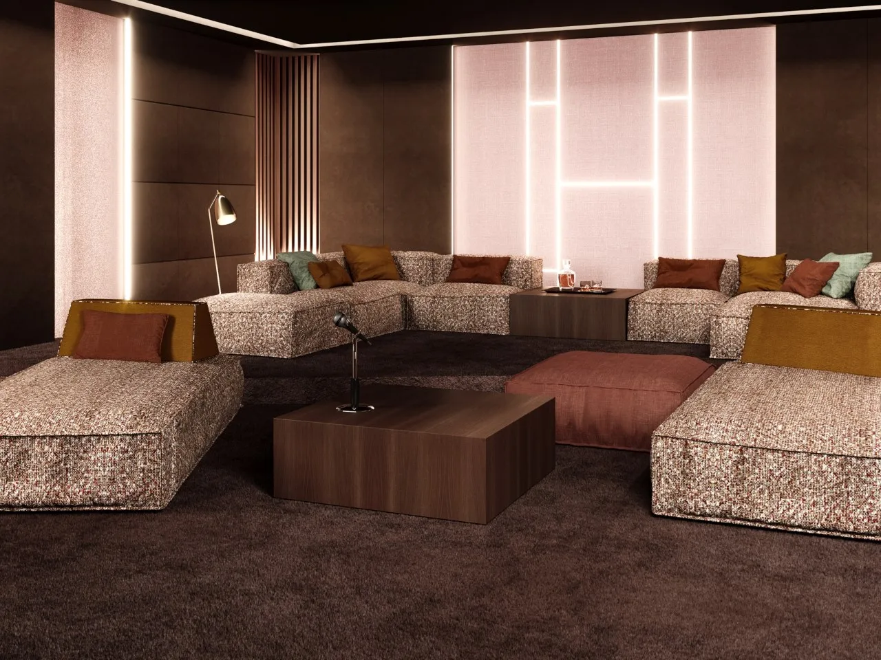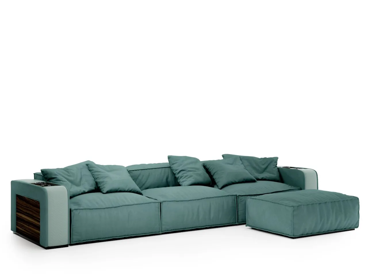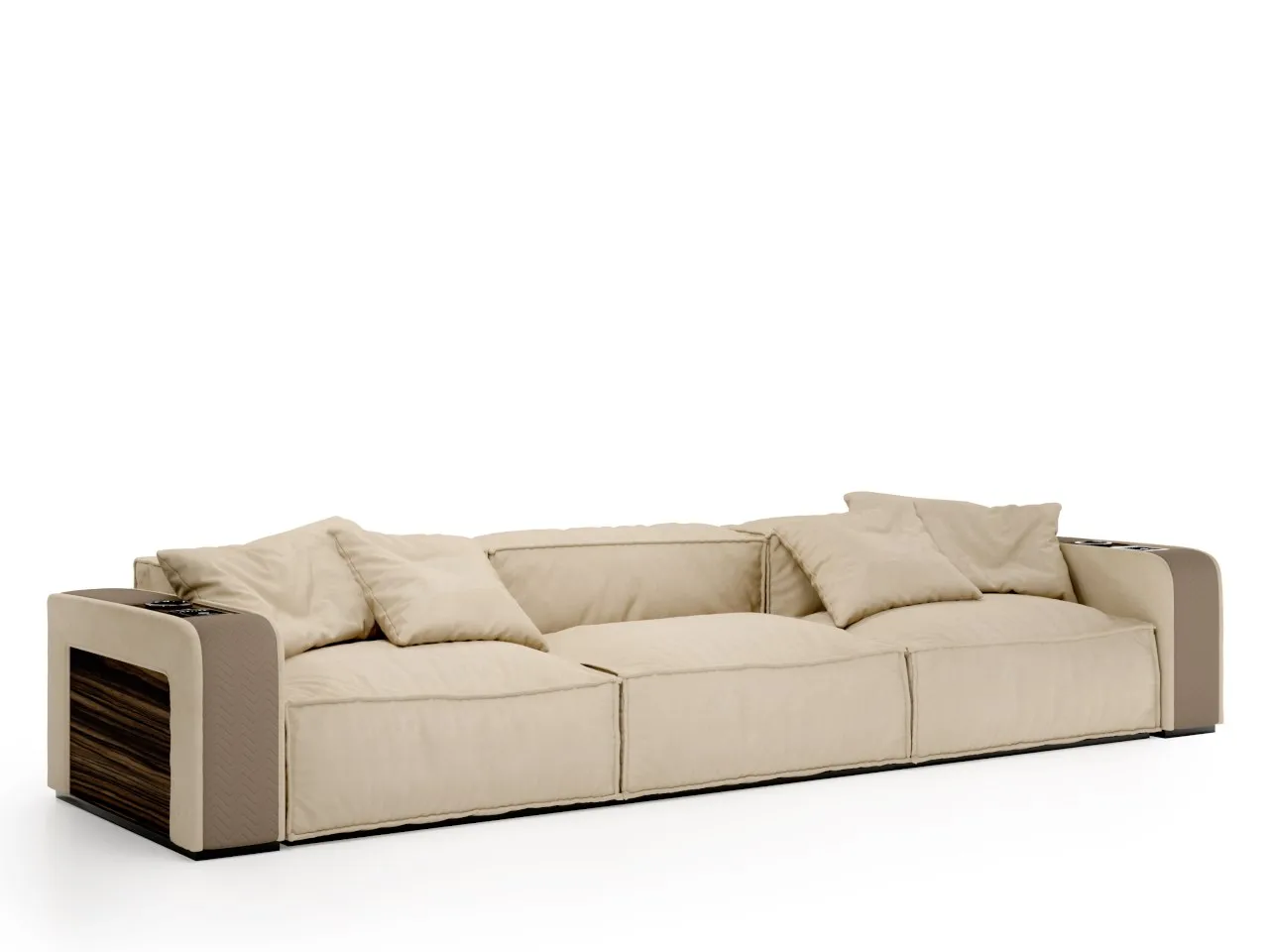 все это в сочетании с большим и удобным сиденьем, идеально подходящим для домашнего кинотеатра и гостиной. Диван ONASSIS доступен в различных материалах, таких как кожа, ткани, бархат и нубук. Его модульность позволяет создавать бесконечные композиции.