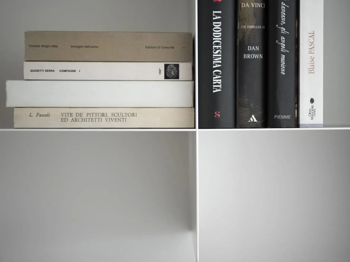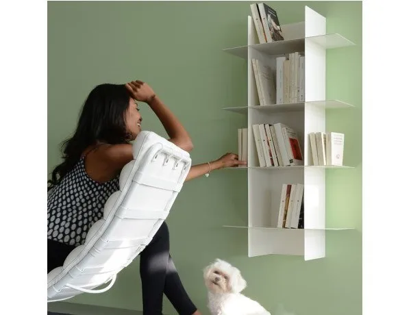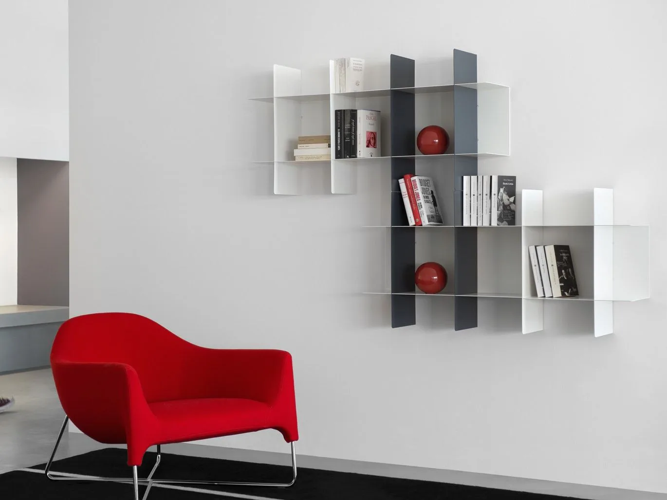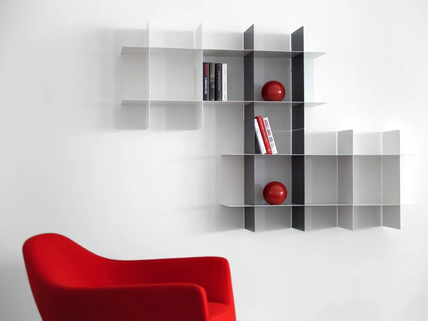 прививка-это секционная стальная Книжная полка, состоящая из основного центрального модуля, который крепится к стене, и четырех полок, которые идеально вписываются в модуль, образуя шаблон квадратных отсеков, с элегантным дизайном, современным, но востребованным в своей простоте.