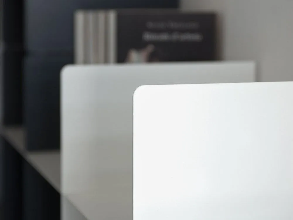 сильной стороной является возможность разнообразить цвета несущего модуля от цветов полок, таким образом играя с различными хроматизмами в зависимости от декора гостиной, спальни, домашнего офиса. Вы можете выбрать между 15 цветами RAL и 2 металлизированными цветами (золото и медь) цвет выборки.