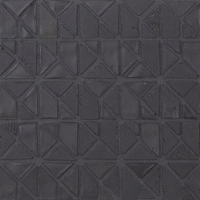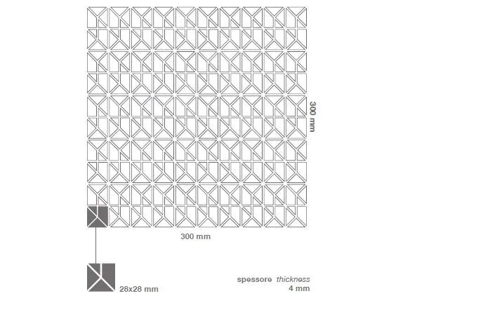 проект, возникший в результате изучения геометрической формы квадрата, разложенного на более мелкие первичные формы, содержащиеся в нем, такие как треугольники и трапеции, которые составляют почти архитектурные структуры. Переливающаяся поверхность и узоры, выгравированные вручную, подчеркивают ее визуальное и тактильное восприятие.