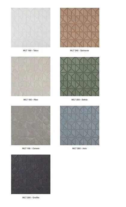 Micro Multiplem представляет собой мозаику из стекла и глины.коллекция Micro Multiplem выражает множественную сущность материи, стекла и глины, с ее цветами, смесями и новым декором. проект, возникший в результате изучения геометрической формы квадрата, разложенного на более мелкие первичные формы, содержащиеся в нем, такие как треугольники и трапеции, которые составляют почти архитектурные структуры. Переливающаяся поверхность и узоры, выгравированные вручную, подчеркивают ее визуальное и тактильное вос...