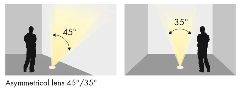 угол открытия 30° и асимметричный 45°/35°.