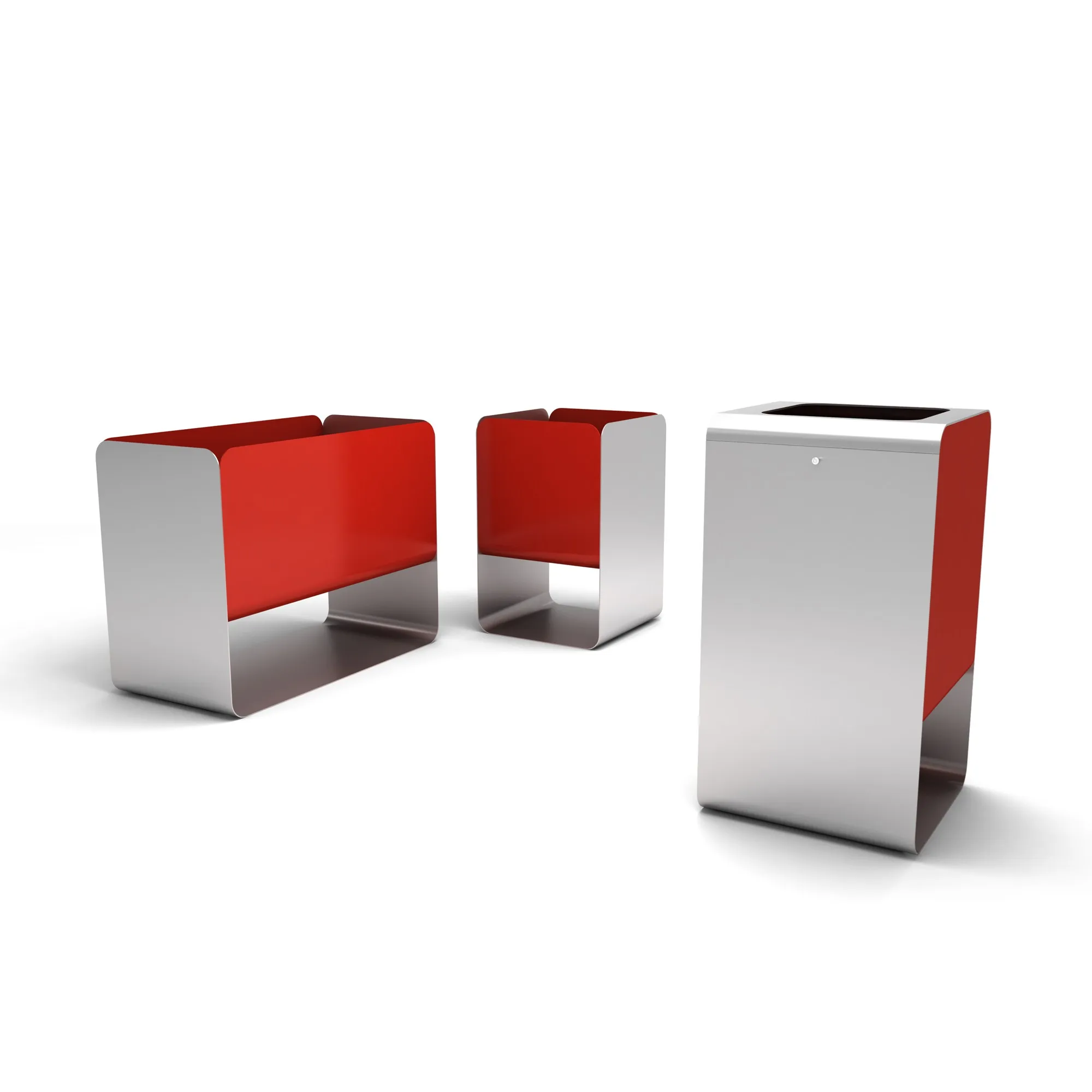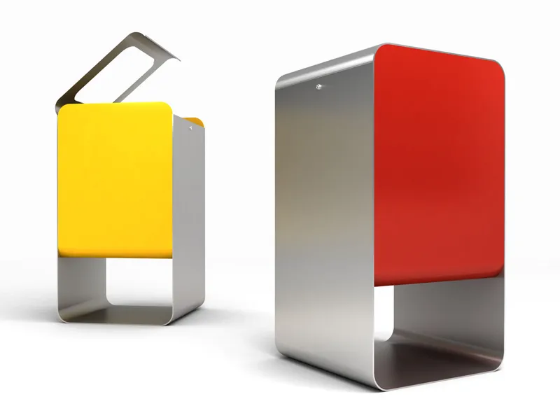 Smith это корзина большой емкости, представленная как комбинация двух лент: O-образной и U-образной, которые, соединяясь друг с другом, закрывают композицию и определяют функцию удержания мешка. Открытие осуществляется сверху, а петли крышки расположены внутри и убираются. Конструкция резкая и чистая, а две стальные полосы, прессованные и оцинкованные, которые составляют форму корзины, могут быть окрашены в разные цвета цвета.