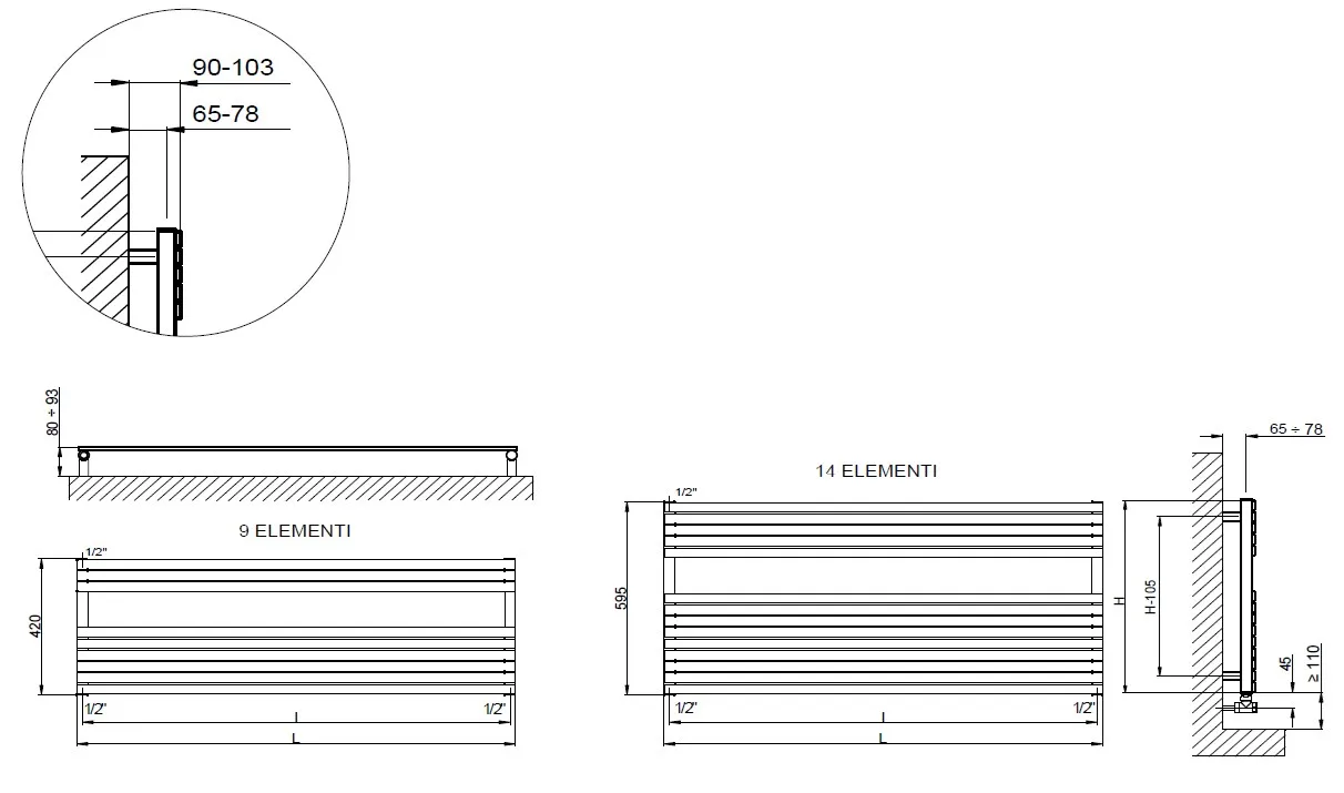 полностью изготовлен из полированной нержавеющей стали,Fujiko это практичный полотенцесушитель, подходящий для ванной комнаты. Альбомная ориентация обеспечивает более удобное использование Для всегда комфортной среды.материал:вертикальные коллекторы из полированной нержавеющей стали ø 30 мм.горизонтальные излучающие корпуса из полированной нержавеющей стали 30x10 мм. максимальное давление: 8 бармаксимальная рабочая температура: 110° Cэксплуатация: горячая вода соединения: N° 2 1/2” газ - N° 1 1/2” газ