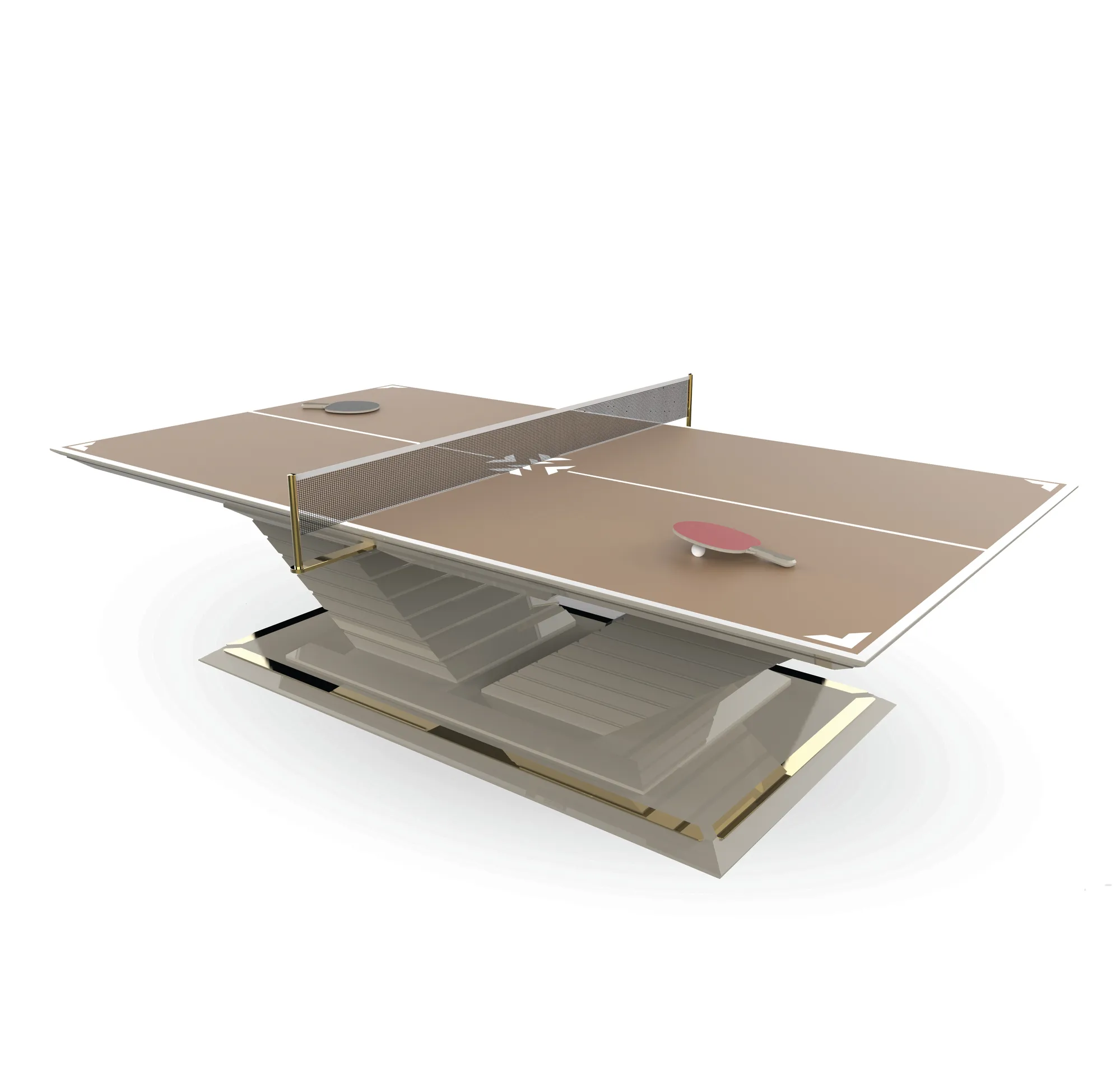 стол для настольного тенниса Vismara-это инновационный продукт с большой универсальностью: в своей традиционной версии он служит элегантным столом для встреч, но в тот момент, когда игровая сетка извлекается и устанавливается, он превращается в Moderna ping pong Table в комплекте со всеми необходимыми принадлежностями. Это продукт с сильной эстетической индивидуальностью, отличающийся эксцентричным внешним видом и маниакальным вниманием к деталям. База, с современным дизайном, делает цельный стол идеально подходит для оформления эксклюзивных рабочих помещений и конференц-залов. Стол обогащен профилями из нержавеющей стали, которые придают изделию нотку элегантности и изысканности. Игровая поверхность имеет характерную компоновку пинг-понга и доступна во всех цветах Pantone. Vismara также предлагает набор для настольного тенниса с ракетками и профессиональными мячами.