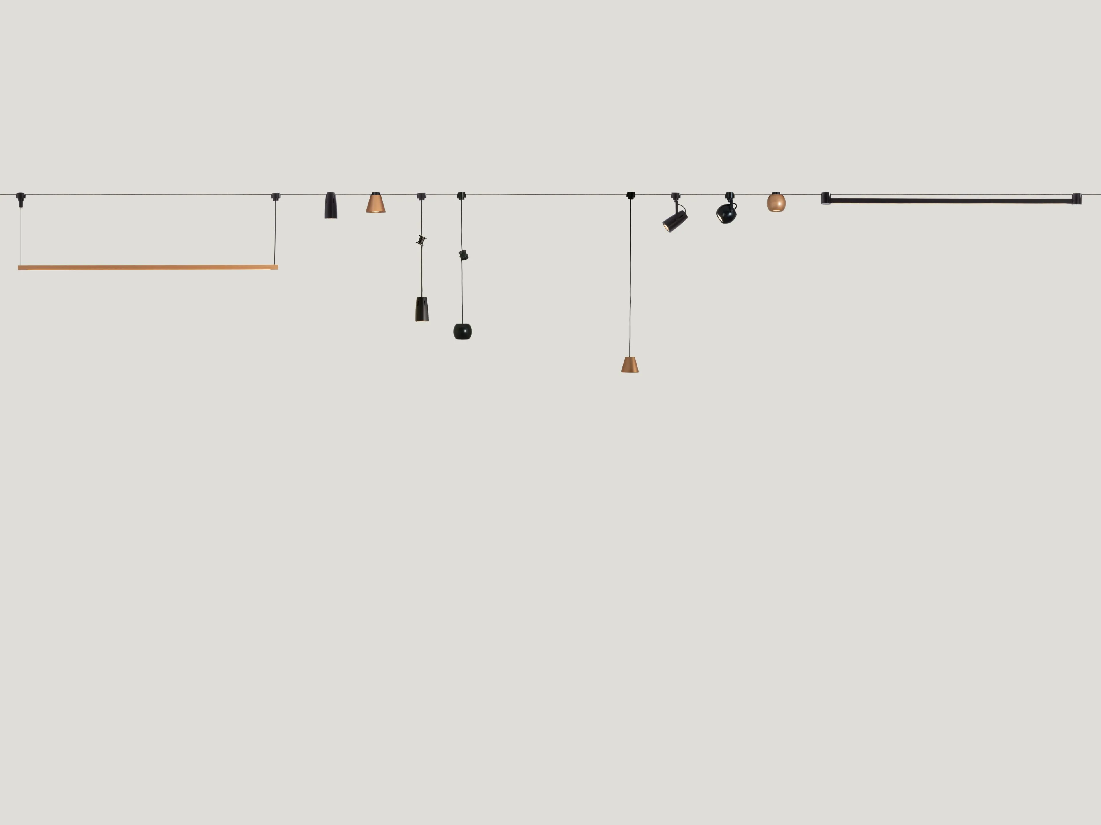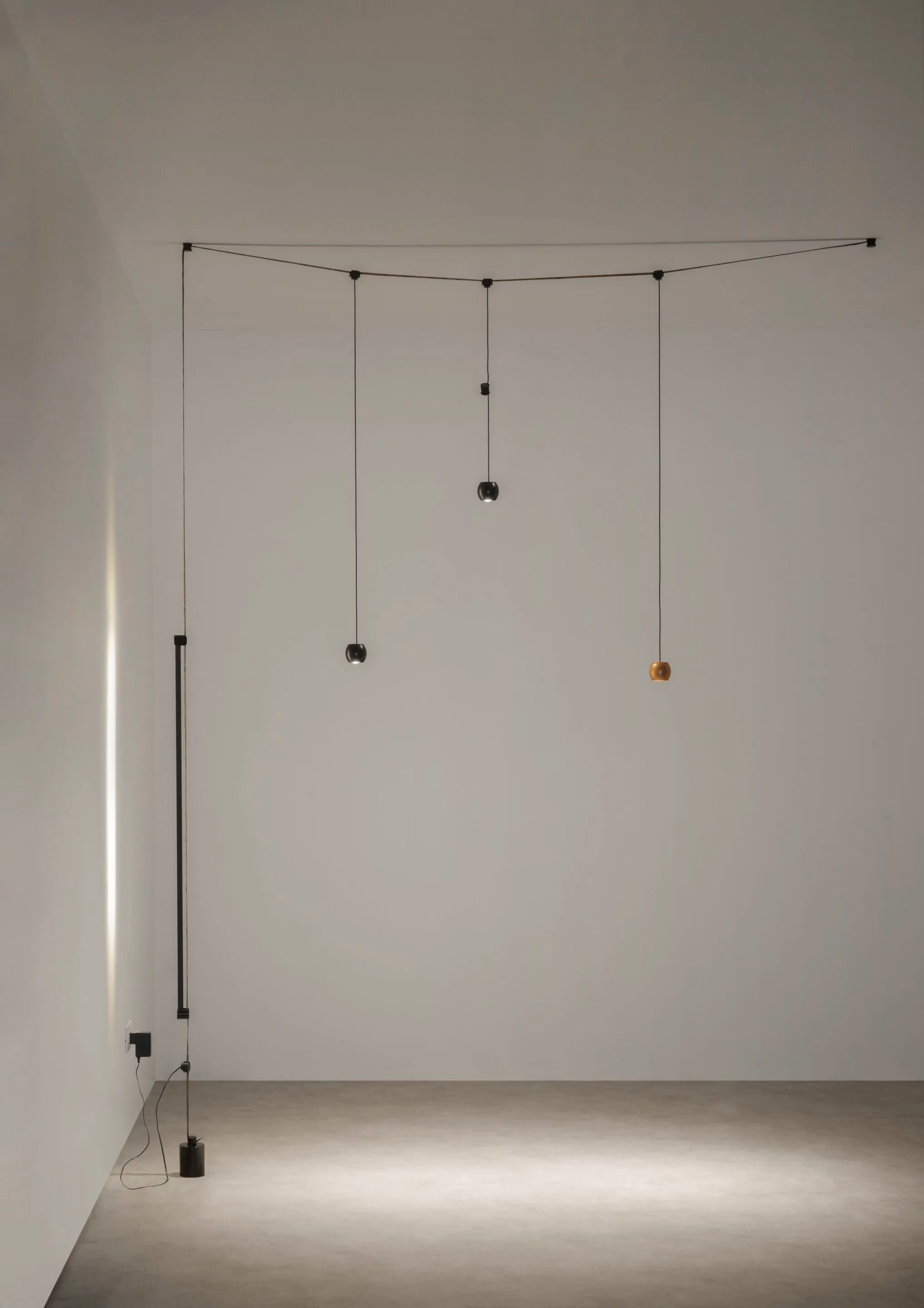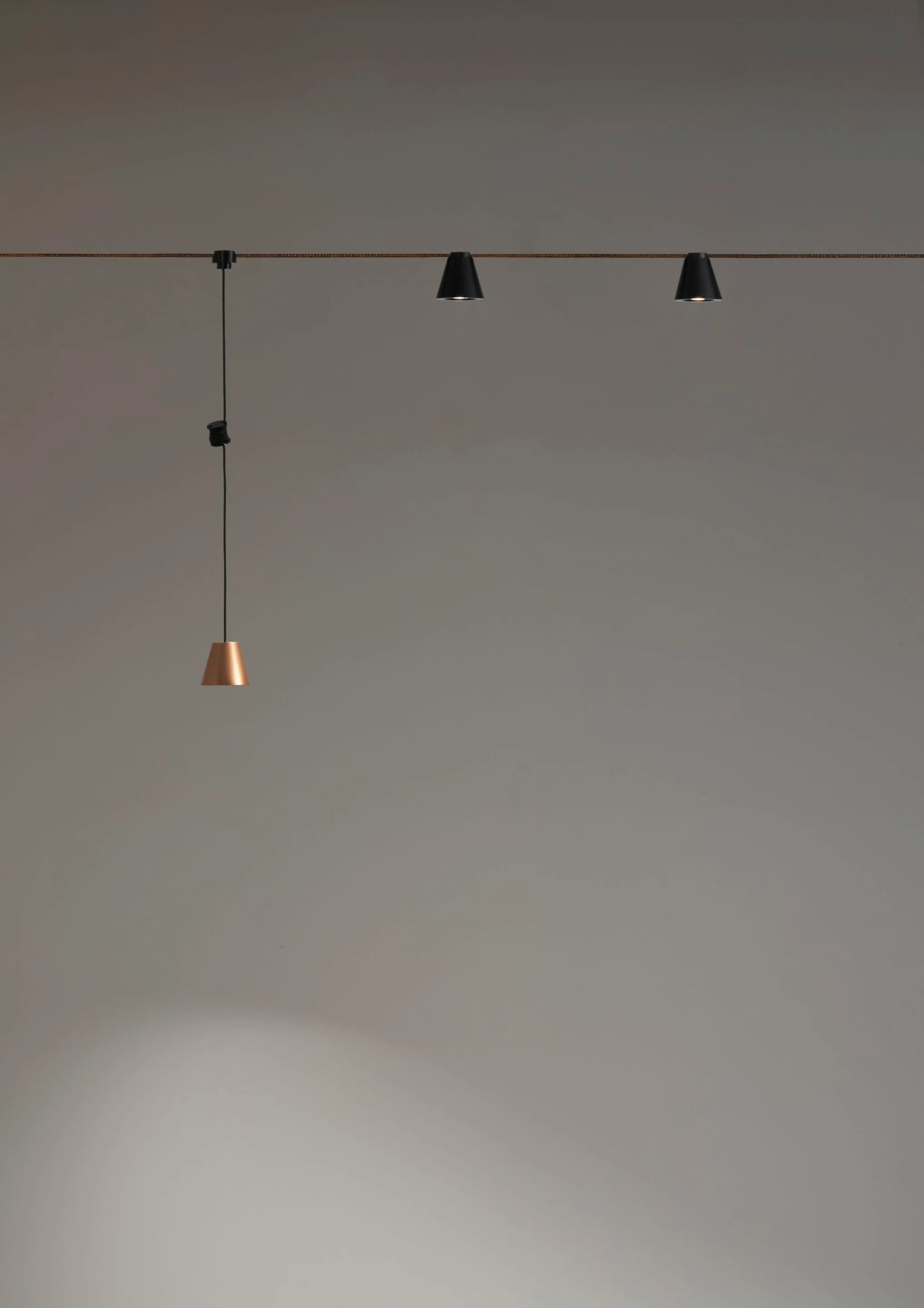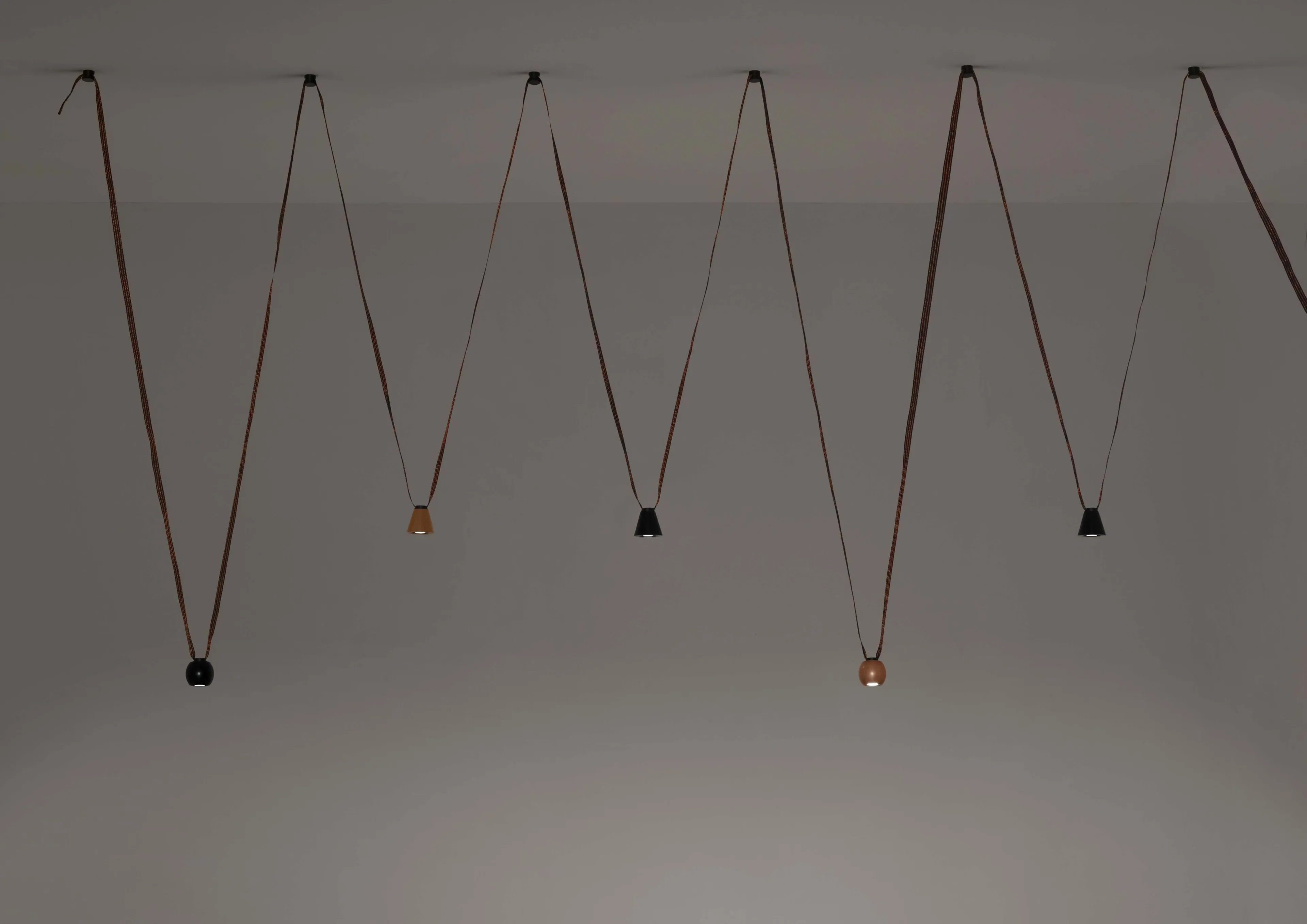 Fil Rouge рождается из желания Antonangeli предлагать инновационные световые решения: благодаря постоянному поиску технологий, материалов, приложений, которые позволяют создавать оригинальные продукты, которые в то же время отвечают различным потребностям использования, легко применяются. Восемнадцать катушек медной проволоки, сплетенных из инженерных пластмасс, создают очень тонкую ленту высотой 1 мм и шириной 18 мм. В центре три "дорожки", полученные с помощью медных проводов, они проводят электричество низкого напряжения, чтобы разместить и подключить ряд небольших приборов, которые, кажется,” плавают " в пространстве, благодаря отсутствию объема ленты. Филл-Руж пересекает пространство почти незаметно, в нужном направлении, направляя энергию, необходимую для питания светильников, применяемых на заказ: свободно, легко и быстро. Лента, используемая для каждого применения, наматывается в спираль, занимая очень небольшое пространство, которое затем разматывается и натягивается между стеной и стеной, между стеной и потолком или между Землей и потолком.