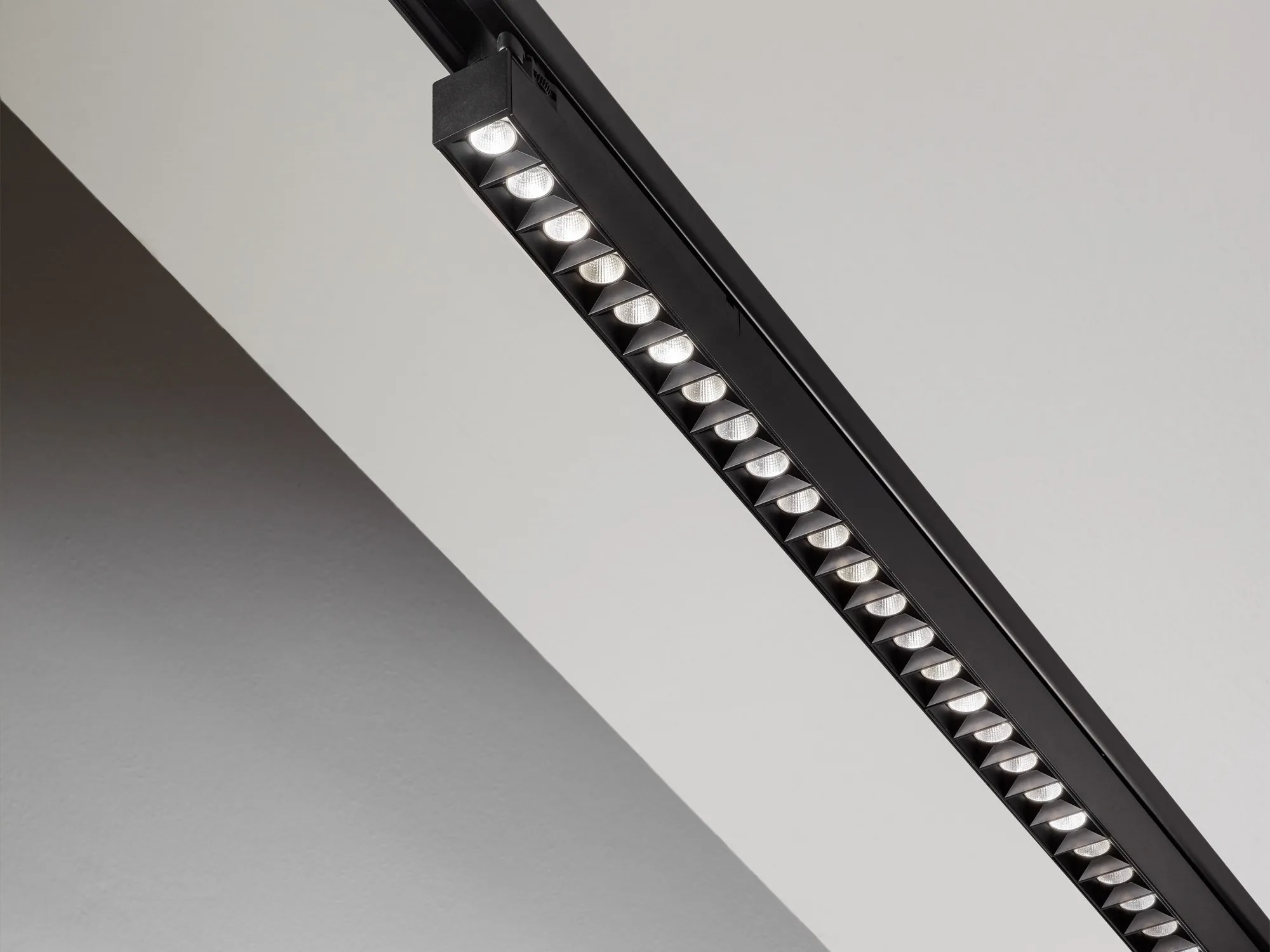 алюминиевый линейный проектор подходит для установки на трехфазной направляющей (стандарт Eutrac), доступен в трех вариантах длины и с порошковым покрытием белого или черного цвета. Встроенный драйвер питания размещен внутри рельса, чтобы минимизировать видимый след продукта. Свободный в модели WIDE с плоской и рассеивающей оптикой из матового ПММА, в модели UGR с микропризматизированным диффузором из ПММА для контроля бликов и в модели ACCENT с черными отражателями (UGR < 16). Встроенные светодиодные источники; доступны в CCT 3000 K и 4000 K; CRI ≥ 80; срок службы светодиодов 50 000 h L70B50; монтаж и демонтаж без инструментов. Подходит для освещения офисных помещений, торговых площадей и выставочных площадей, идеально подходит в сочетании с другими прожекторами с сфокусированным светом.