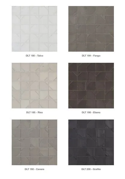 Суми-и лямбда λ и Дельта Δ являются вариантами одной и той же концепции, конструкции, которая возникает из разложения формы квадрата, чтобы дать жизнь новым геометрическим структурам. Вырезая подмодуль внутри классической мозаичной плитки, были созданы небольшие формы, треугольные в случае дельты и квадратные для лямбды.дизайн меняется таким образом в зависимости от того, как элементы ориентированы во время укладки, что приводит к элементу случайности это облегчает и делает поверхности, на которые они н...