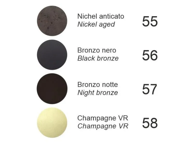 • 57 - Night Bronze, темная, почти черная бронза, защищенная прозрачным матовым лаком. Сильная Moderna тенденция применяется к продукту, созданному с использованием древних методов.