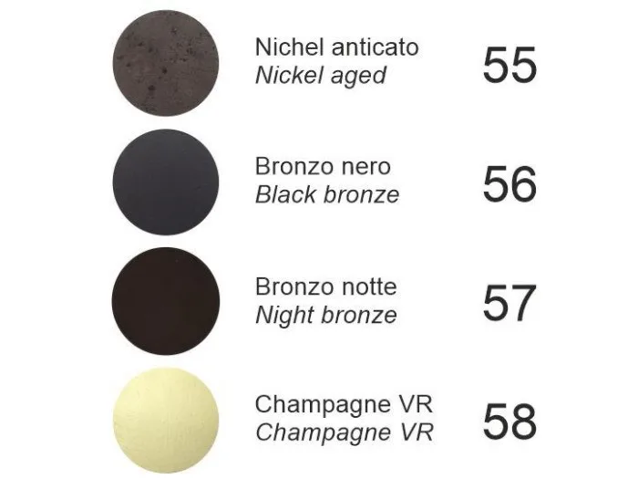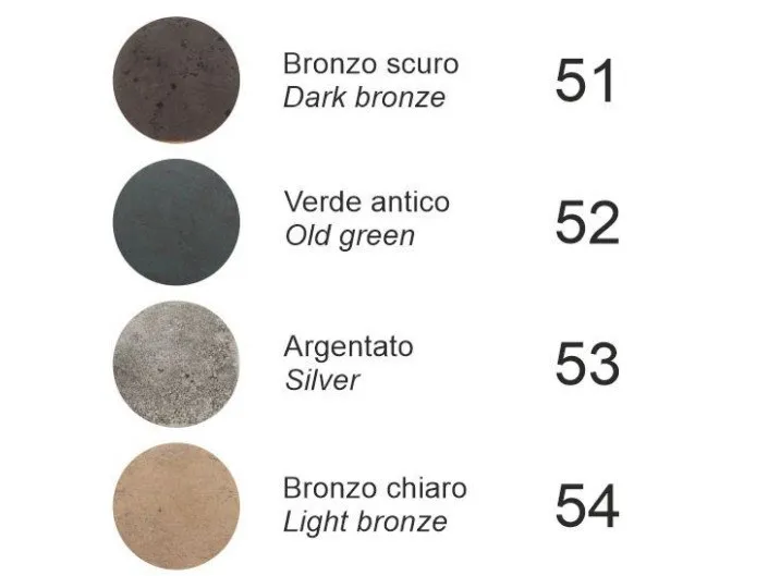 • 54 - Light Bronze, это очень светлая отделка, демонстрирующая естественный цвет бронзы, которая со временем темнеет. Не используются краски, а только натуральный защитный воск.