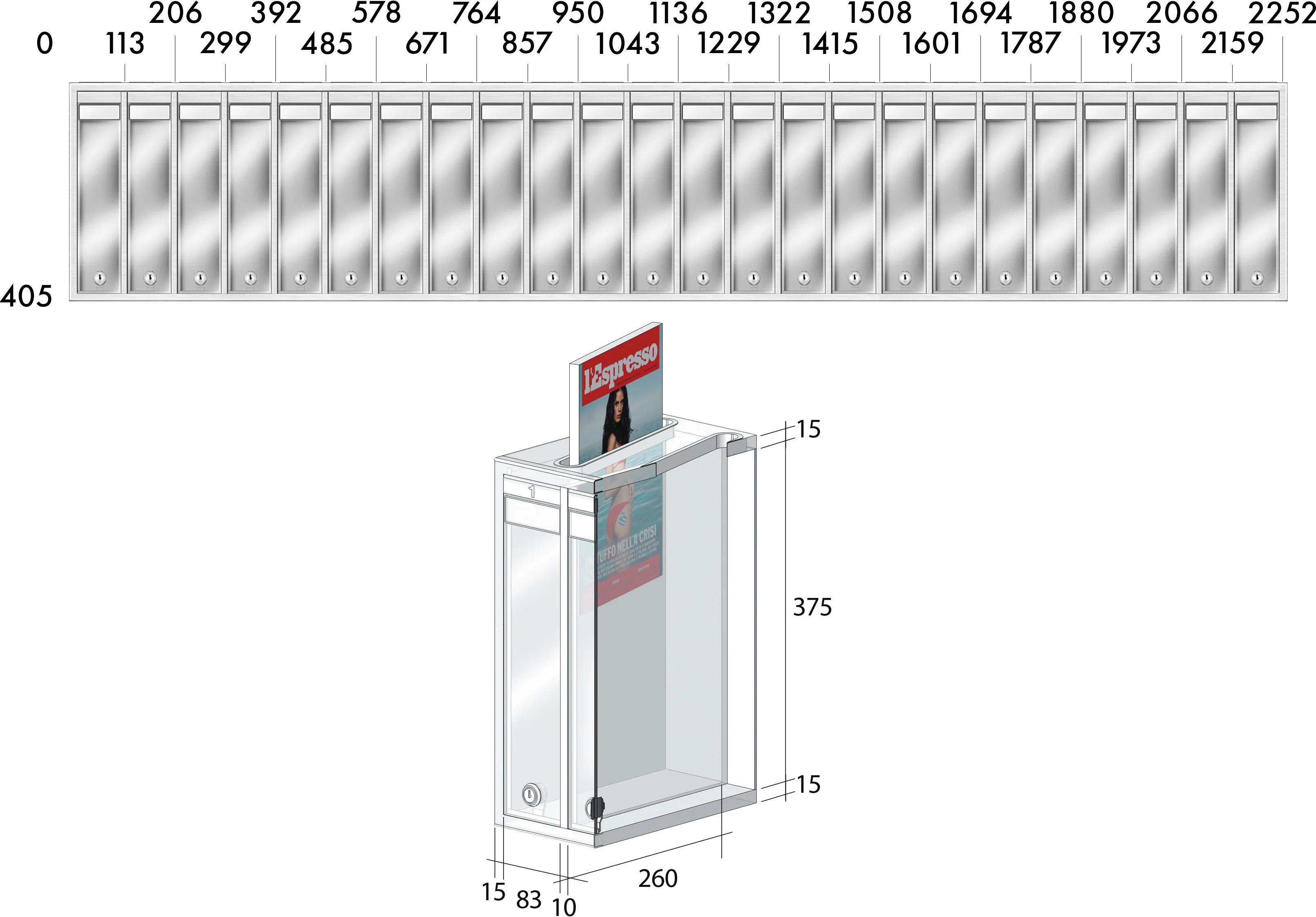 дверца из оргстекла foumé толщиной. мм. 5, поворотное отверстие, цилиндрический замок безопасности с ключом № 2, внутренняя антивандальная табличка с именем, прогрессивный номер, выгравированный на металлическом профиле.