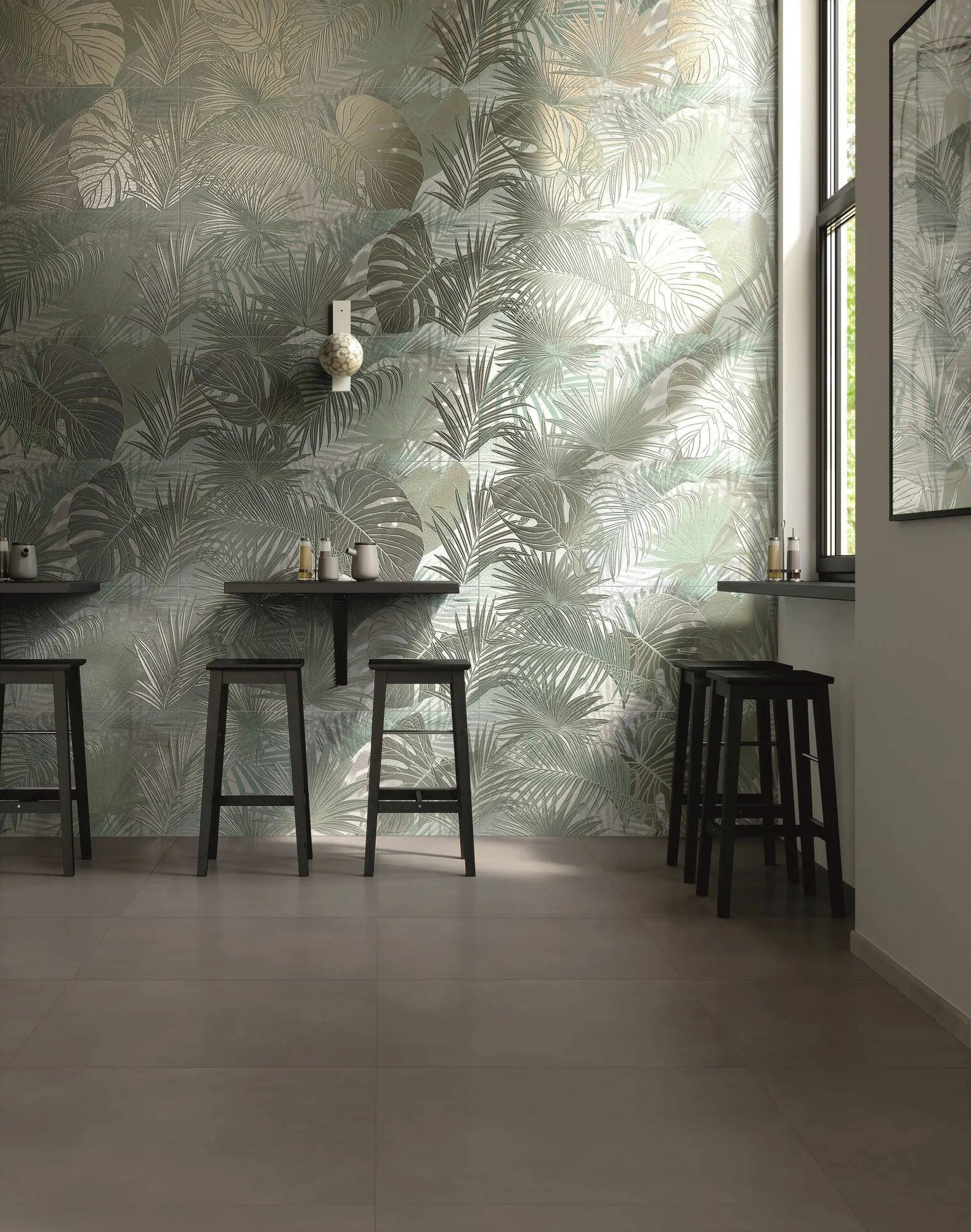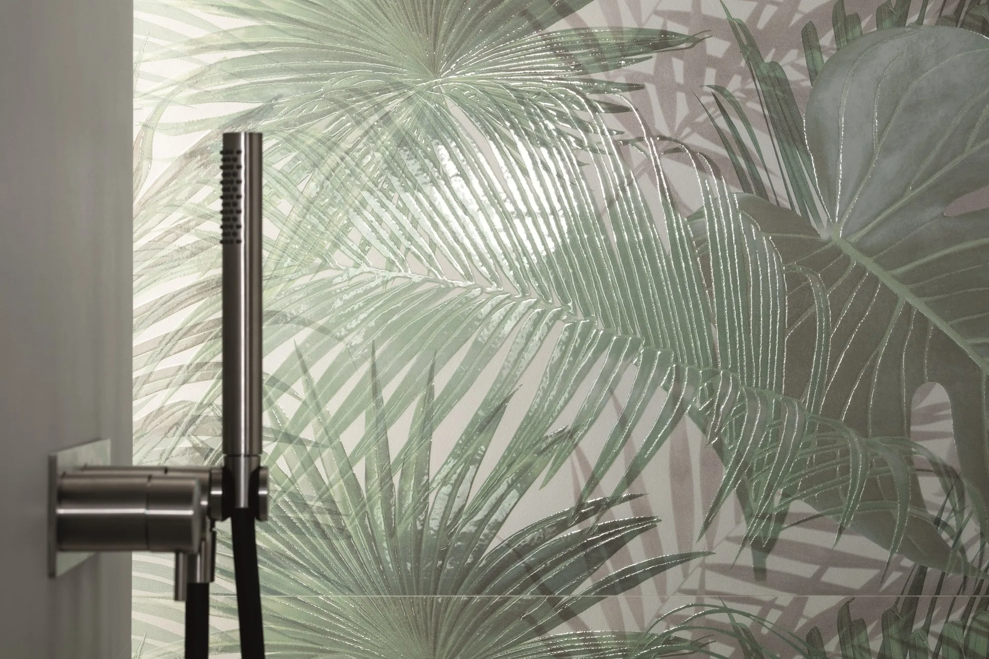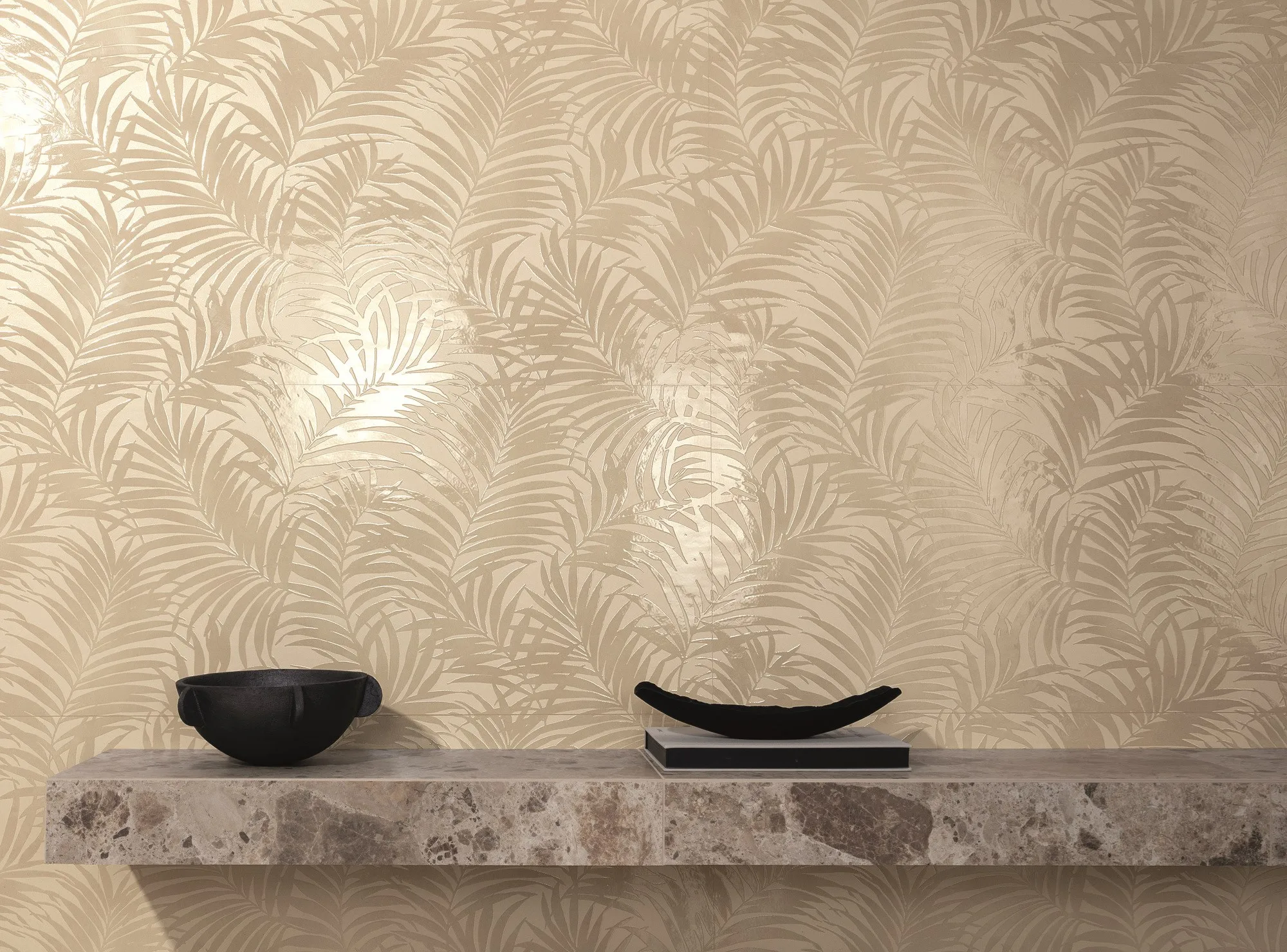 визуальный и цветовой динамизм соответствует современным тенденциям дизайна и моды с панелью Tropical, изготовленной из полированных лакированных листьев стена для ботанического декора в ультра-шикарном ключе доступна в Песчаном, черно-белом и зеленом цветах. В результате получается керамическая стена, способная создавать удивительные внутренние пейзажи. Игра форм, теней и контрастов также встречается в узорах текстурных треугольников и текстурных арок, где геометрия matt & глянцевый напоминает великолепный дизайн 70-х годов.