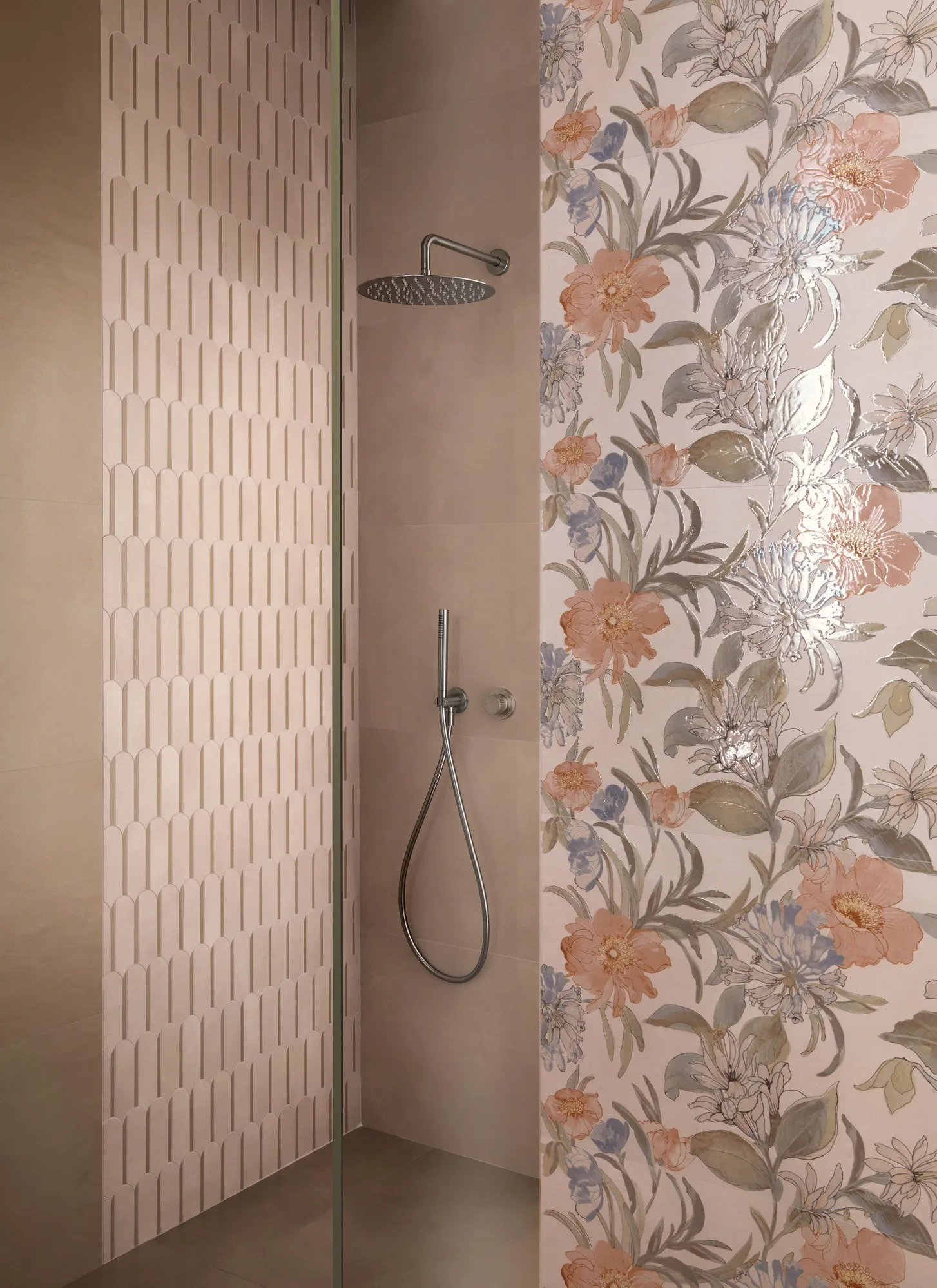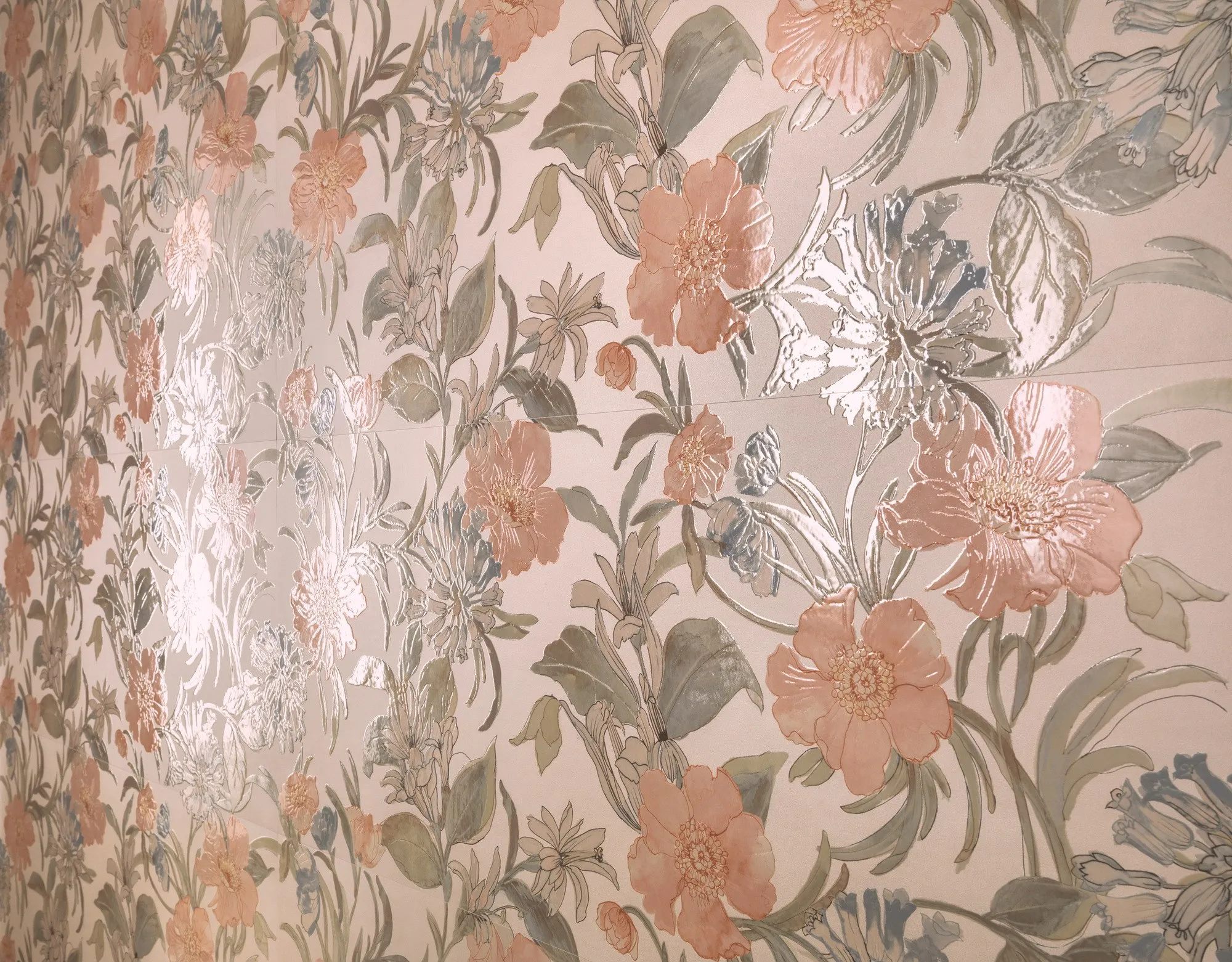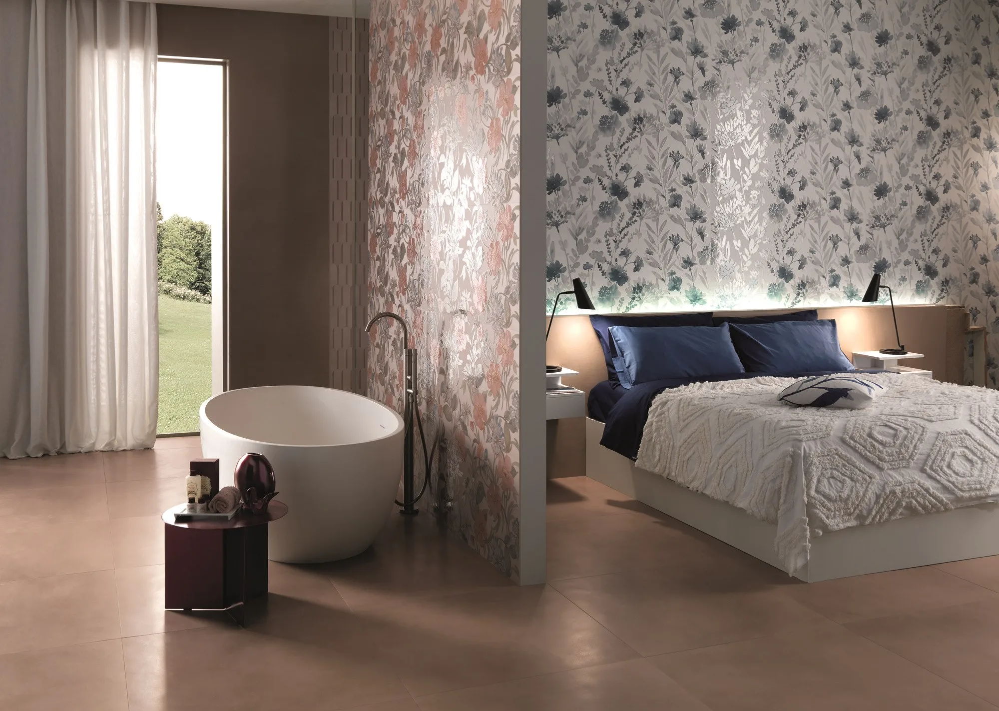 на стене доступны те же согласованные тона, что и на полах, к которым добавляются мягкие и модные цвета, такие как жемчуг, пудра, небо и Аквамарин, мягкие и едва заметные оттенки. Таким образом, результат нежный и наполнен красотой и гармонией.