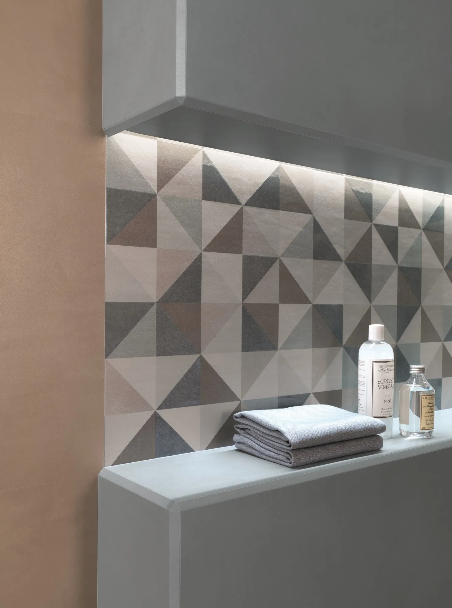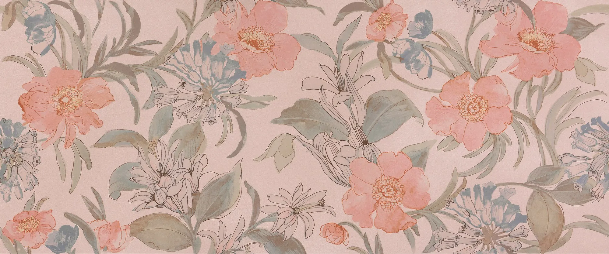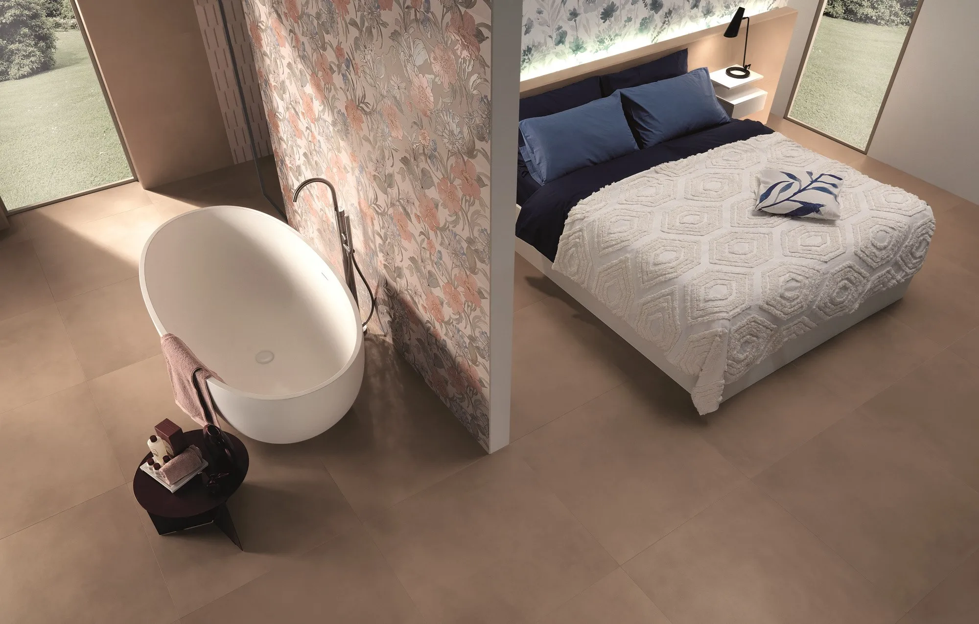 на стене доступны те же согласованные тона, что и на полах, к которым добавляются мягкие и модные цвета, такие как жемчуг, пудра, небо и Аквамарин, мягкие и едва заметные оттенки. Таким образом, результат нежный и наполнен красотой и гармонией.