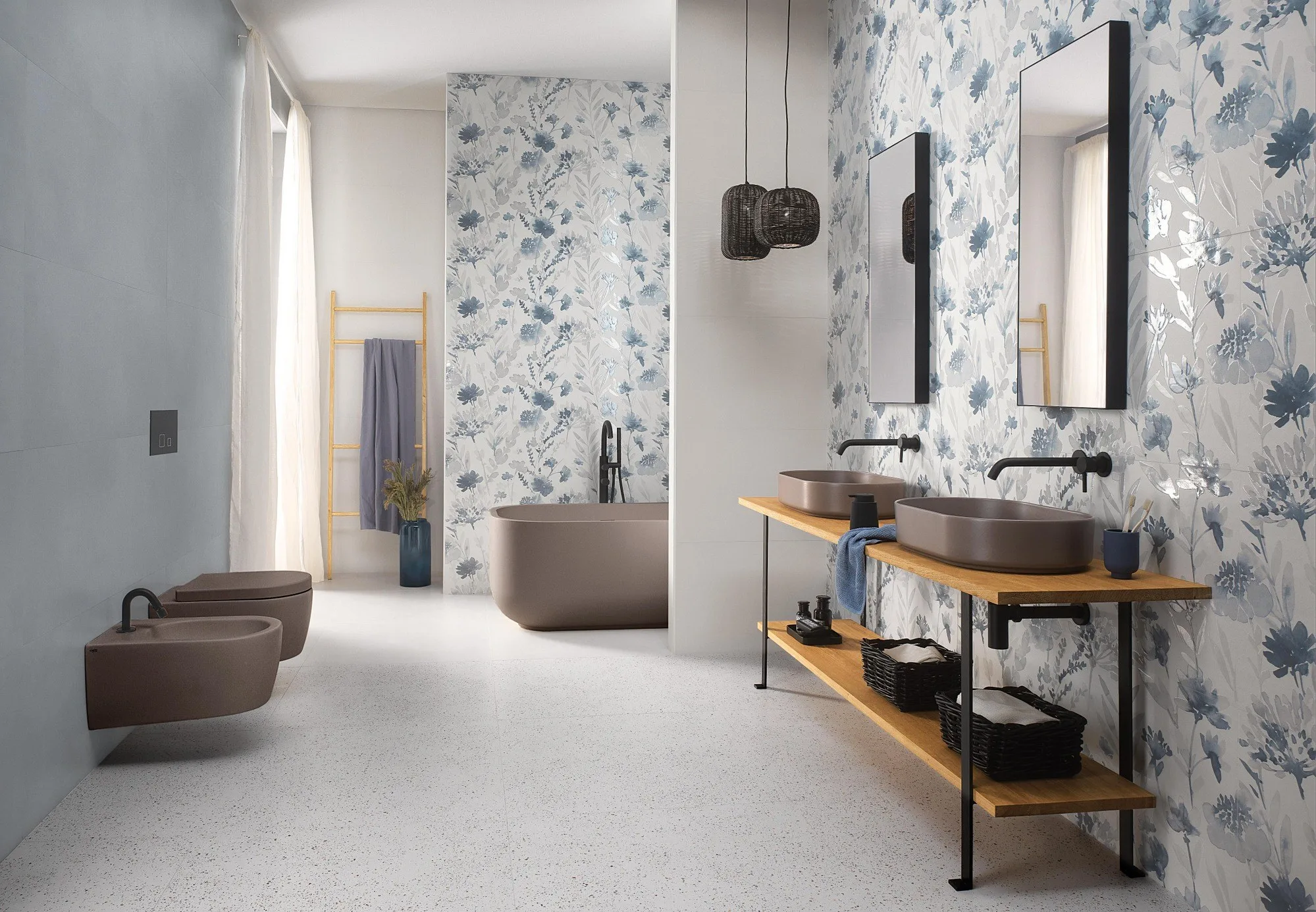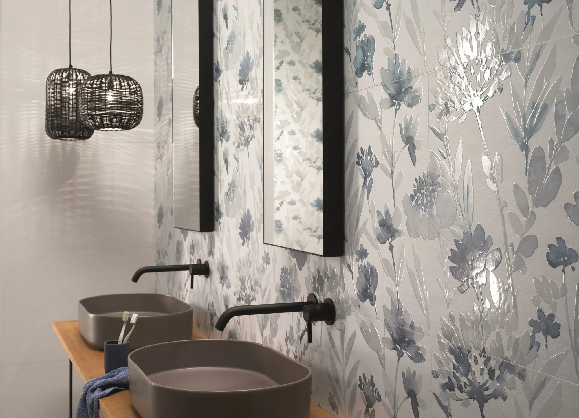 в идеальном цветовом слиянии между дном и декором свет усиливает текстуру Flower Blu - настенное небо, которое отражается на цветочных лаках, - и Flower Moderna Pipria, глянцевый / матовый керамический гербарий, который приносит гармонию в окружающую среду. Благодаря инновационным технологическим достижениям FAP ceramiche этот особый эффект лакирования впервые достигается на промышленном уровне.