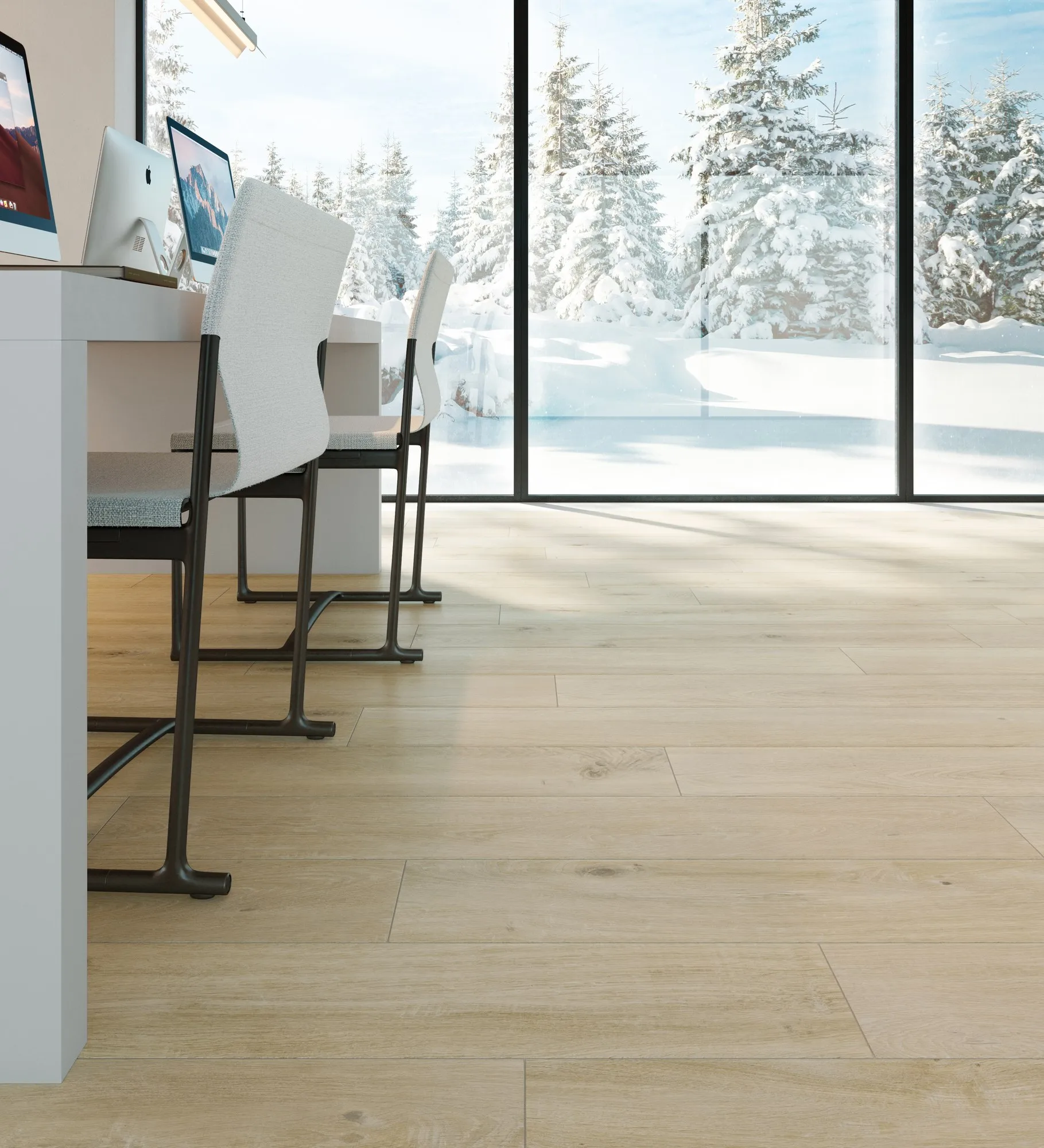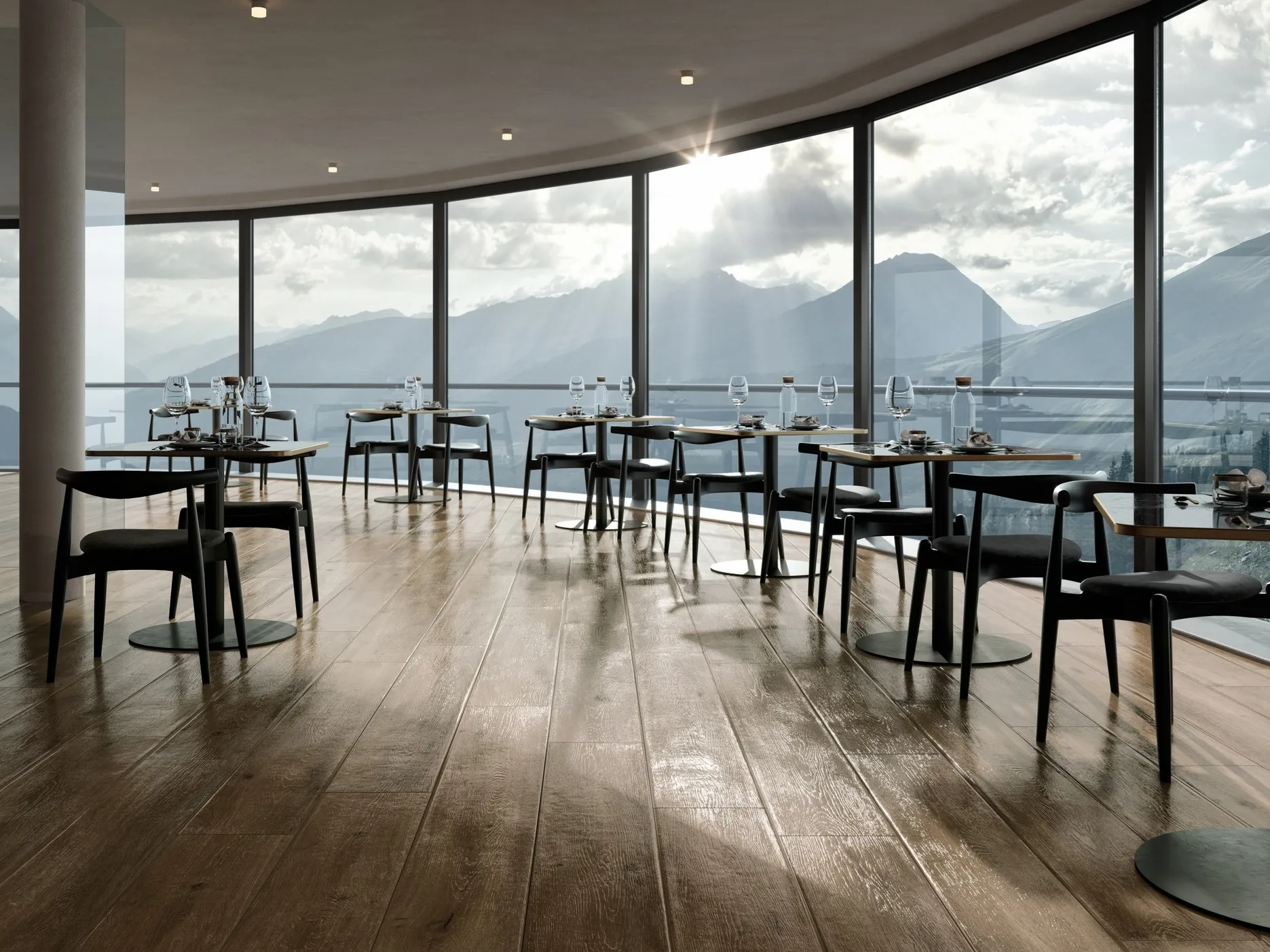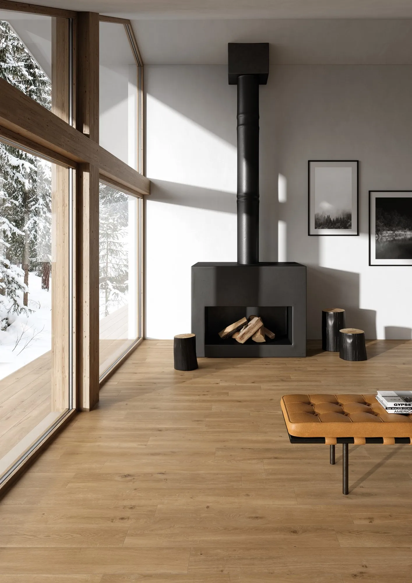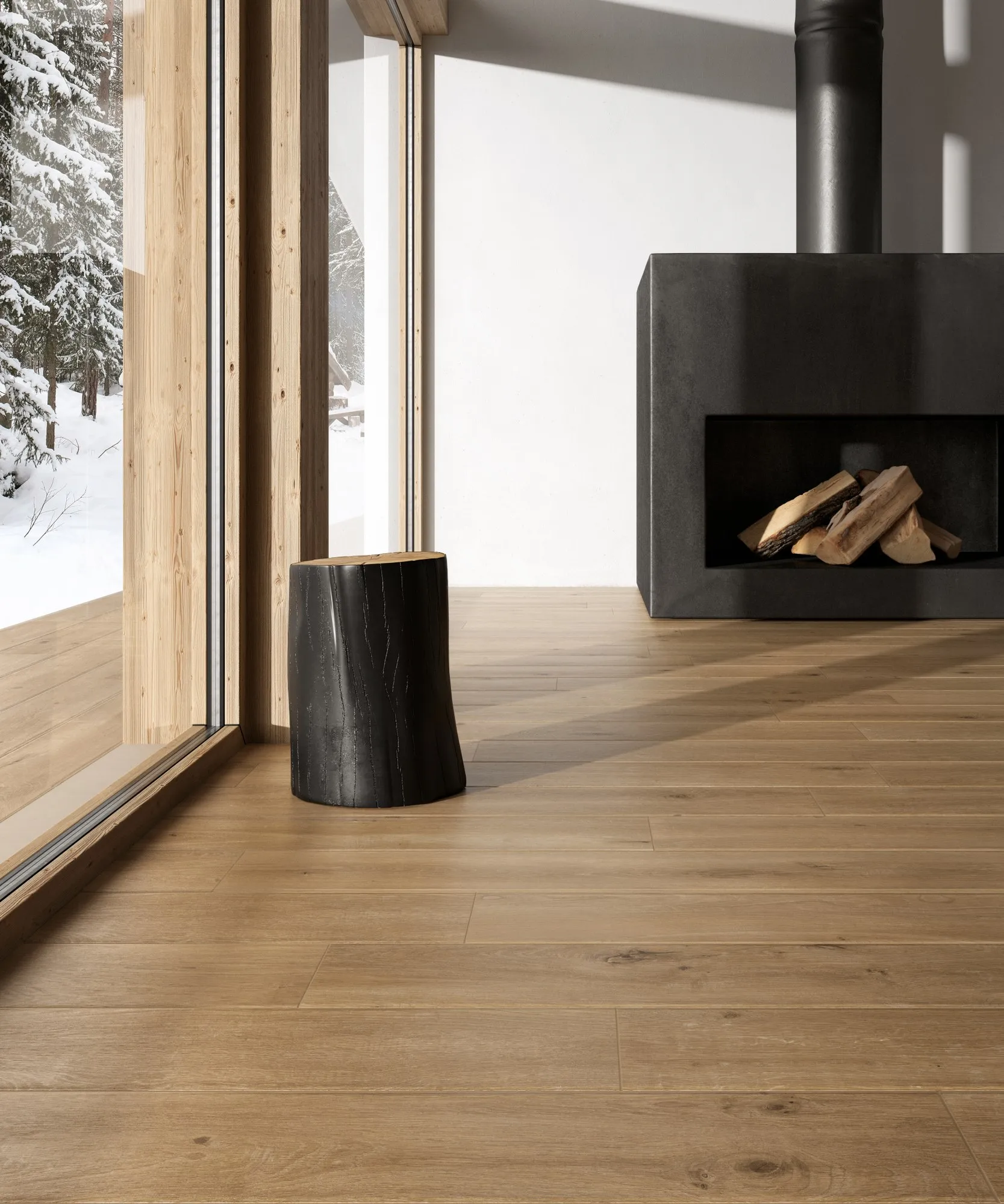 стремление к ремесленному мастерству и естественному теплу, свойственному древним деревянным доскам, заключено в этом драгоценном керамическом материале, который смягчает строгие линии сложной современной архитектуры в эксклюзивных альпийских средах.