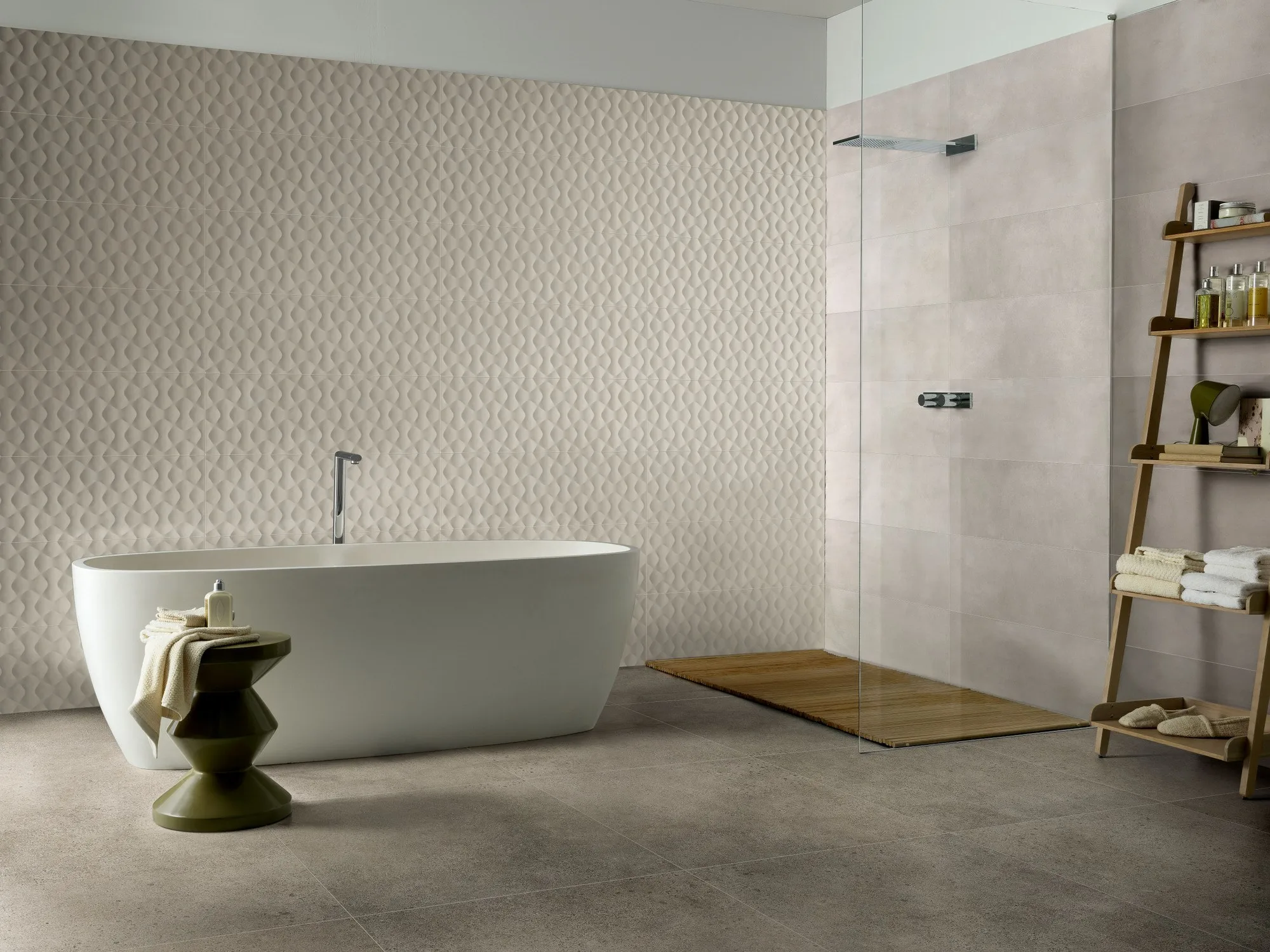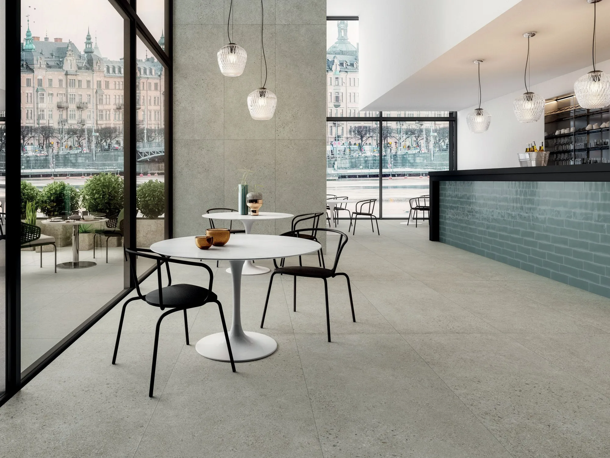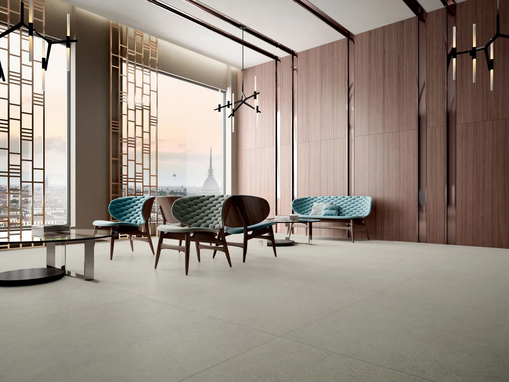 с напольным/ напольным покрытием Deep вставки с каменным эффектом сливаются с бетоном, создавая современную материю, наполненную естественными ссылками. Доступно в различных форматах и цветах