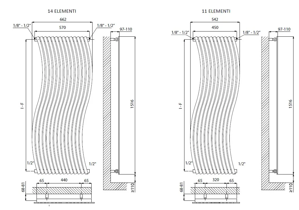 материал: вертикальные коллекторы из полированной/матовой нержавеющей стали ø 38 мм.