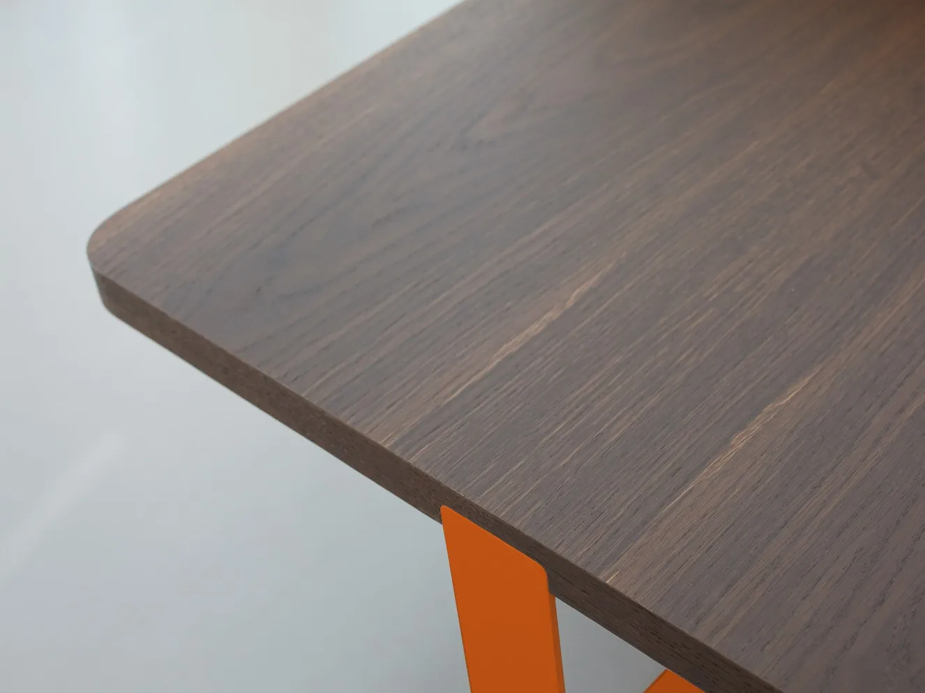 журнальный столик с верхним шпоном из настоящего дымчатого дуба и лакированными металлическими ножками.
