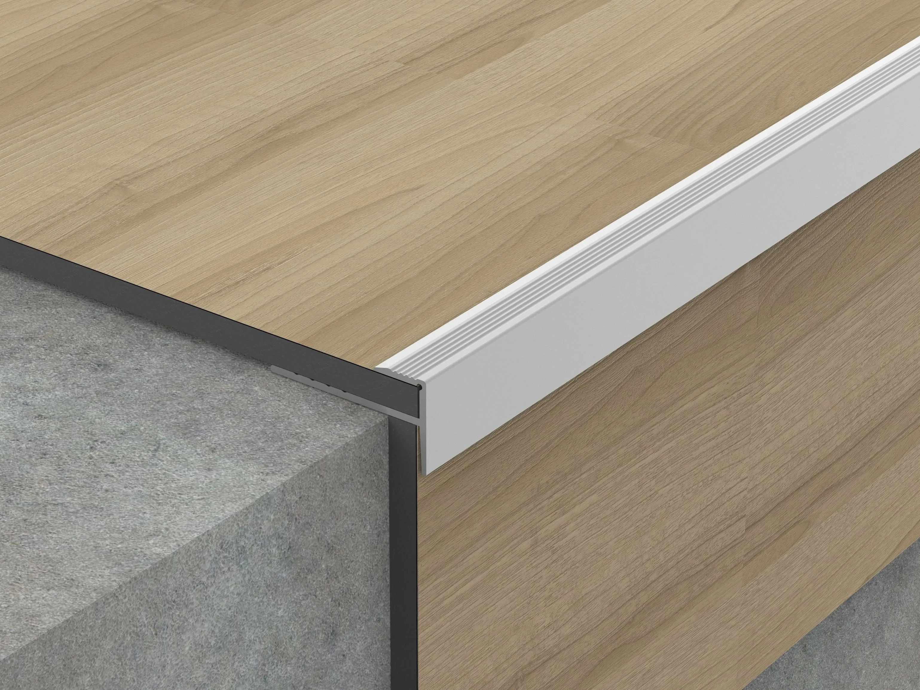 SMA/, 75/F, 111/ /F - это анодированные алюминиевые профили, подходящие для лестниц, покрытых клееным LVT. G/705и ZGF/ - это алюминиевые профили, подходящие для криволинейного движения лестниц или клееных полов LVT.