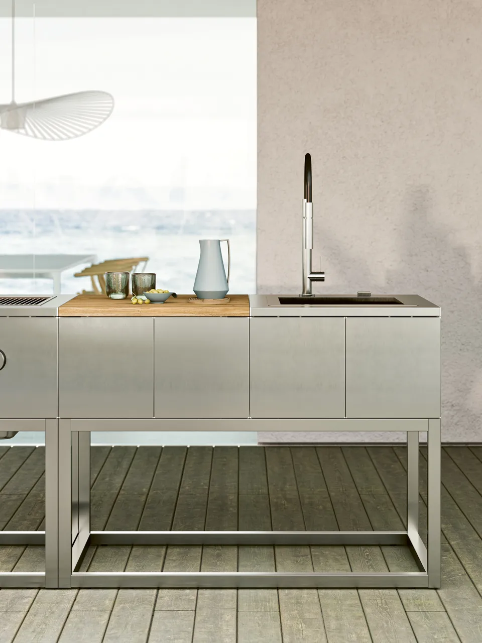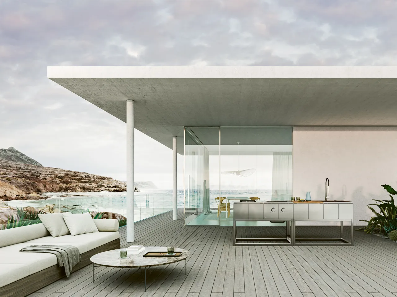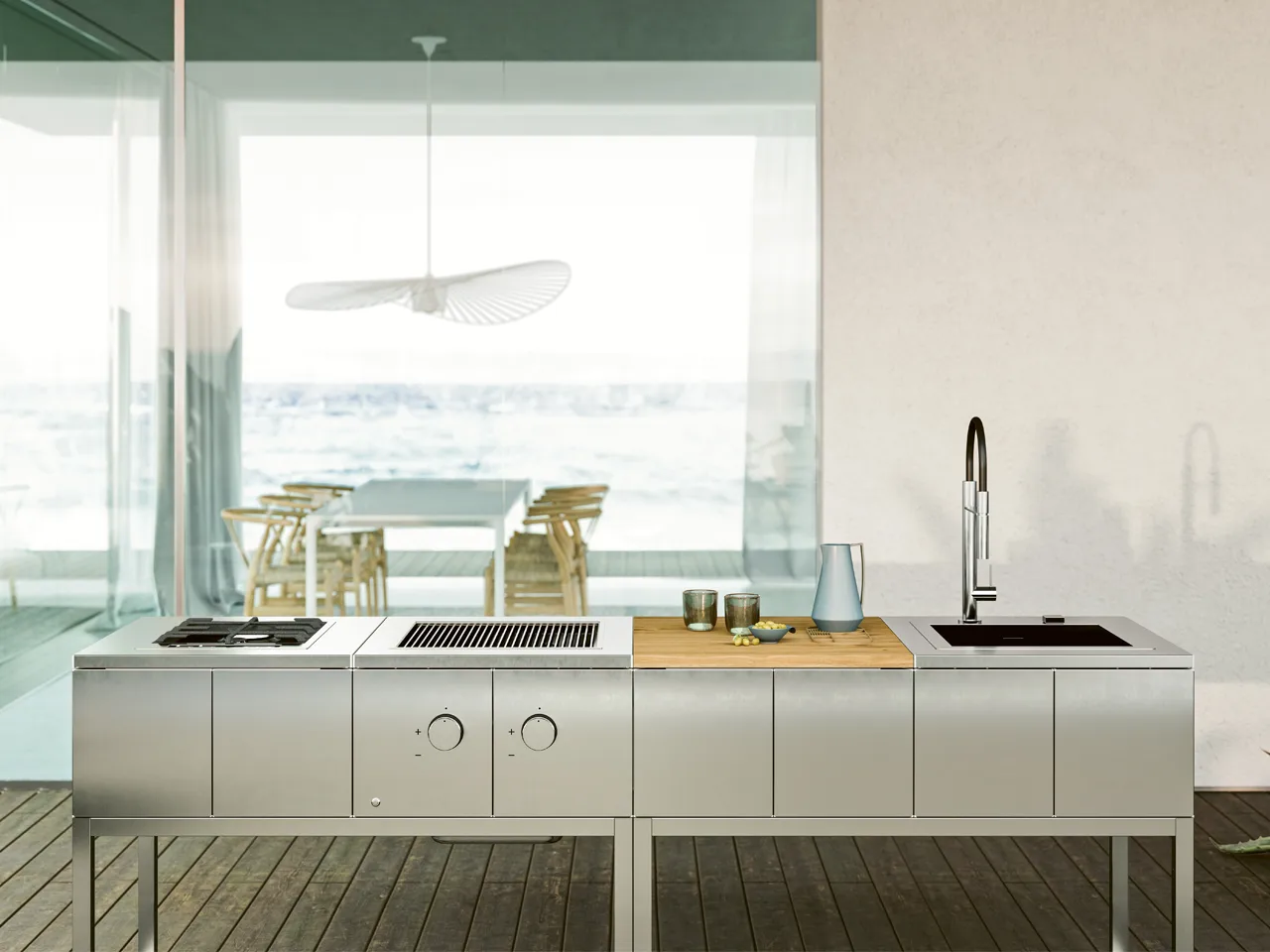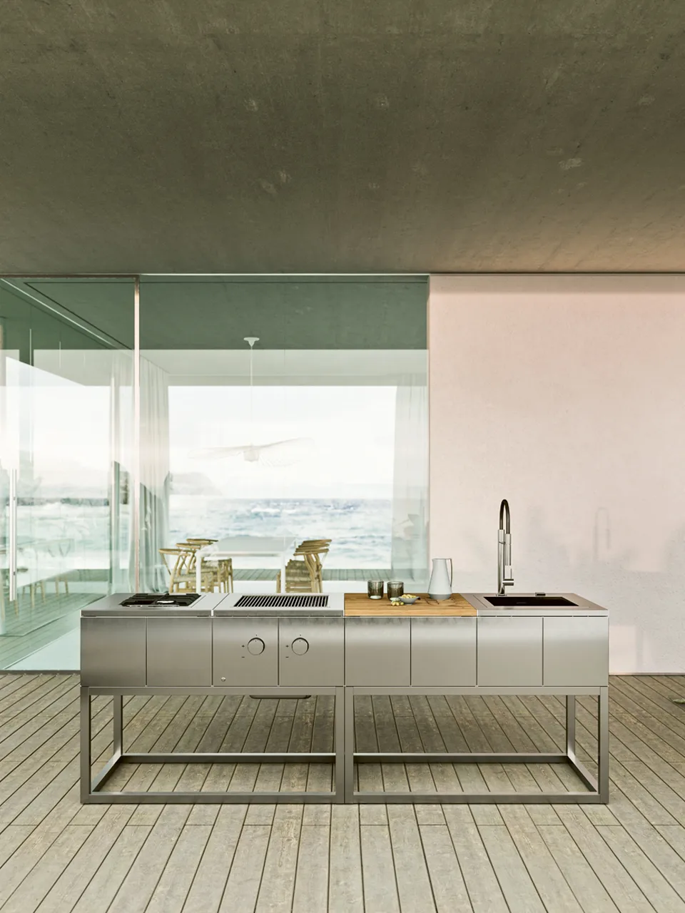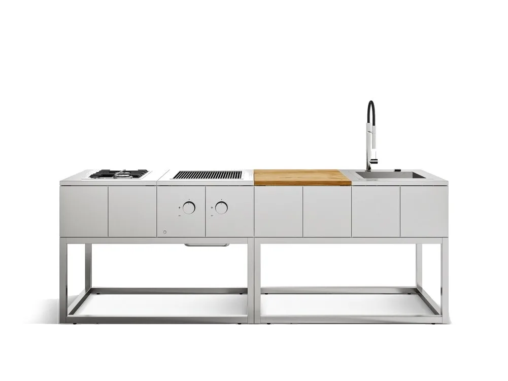 R2-это модель с минимальной эстетикой, ее модули не имеют конструктивных ограничений, поскольку исходный модуль является независимым. Это дает возможность создавать свою собственную идеальную комбинацию с течением времени, добавляя модули с различными функциями без видимой интеграции. из-за наличия открытой бытовой техники R2 всегда следует размещать в защищенном месте, под крышкой. R2 упакован с открытыми модулями, которые можно комбинировать по желанию выбор между выпечкой, стиркой и столешницами.