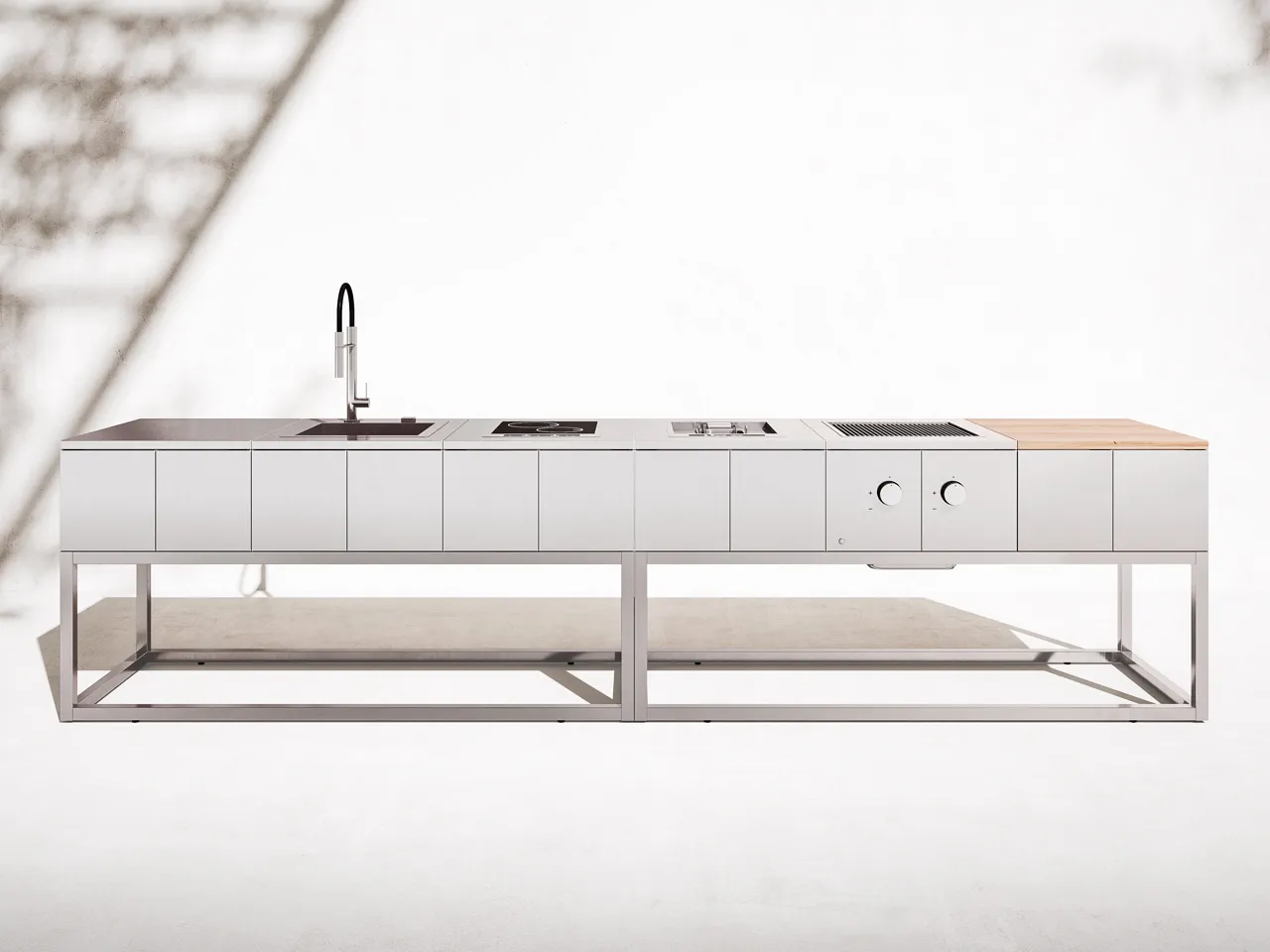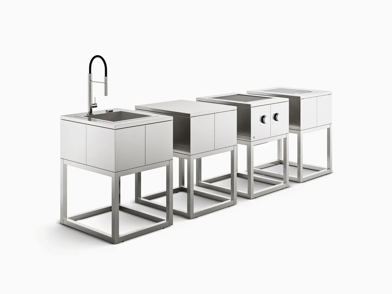 R2 упакован с открытыми модулями, которые можно комбинировать по желанию выбор между выпечкой, стиркой и столешницами.