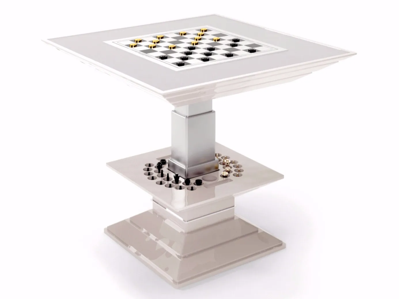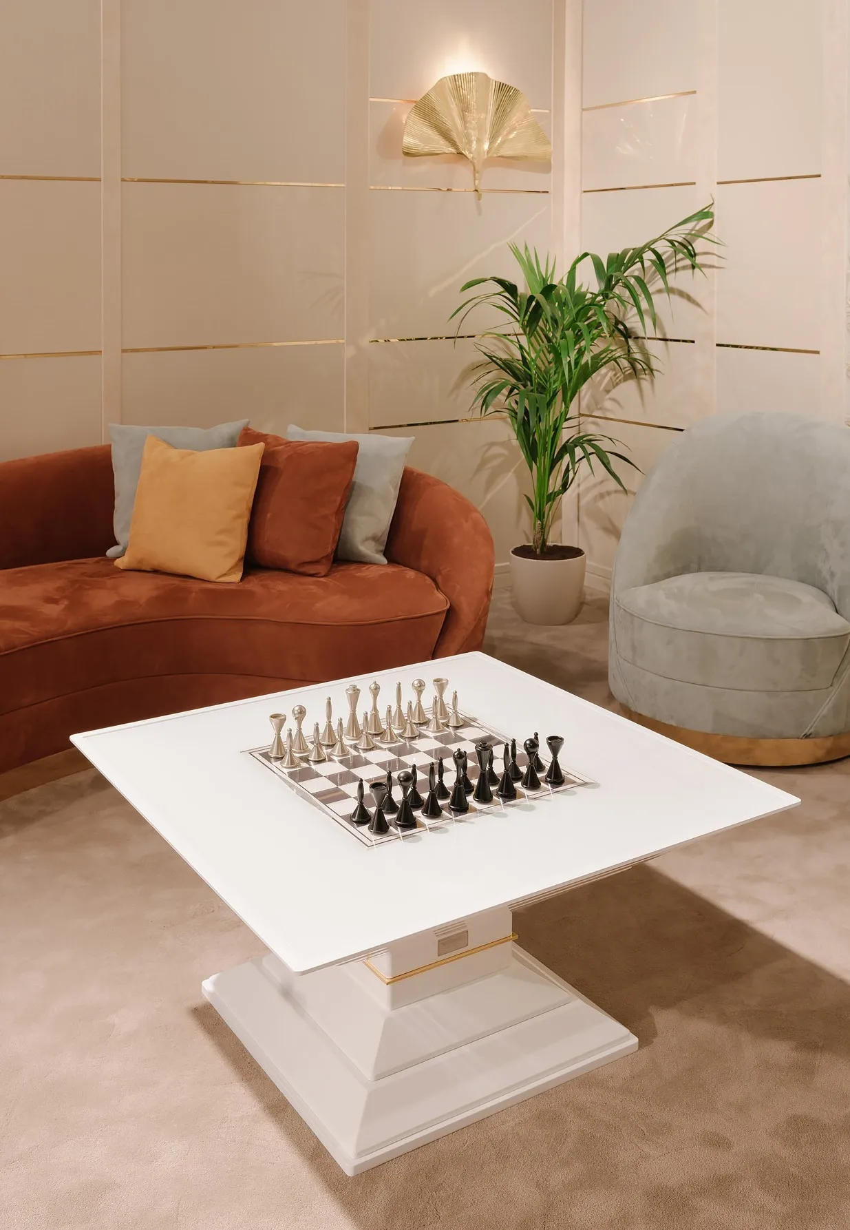современный стиль и соблазнительная сила-вот характеристики, отраженные в каждой детали шахматного стола Vismara. Этот журнальный столик-это настоящее произведение искусства, которое можно использовать в различных режимах. Механизм подъема усиливается перезаряжаемой литиевой батареей непосредственно от домашнего тока; движение управляется с помощью кнопки, расположенной сбоку, или с помощью дополнительного пульта дистанционного управления. Внутри находятся шахматы, шашки для шашки и нарды. Шахматная доск...