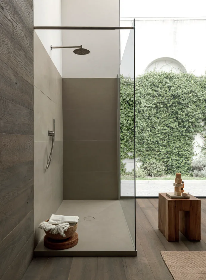 облицовка стен, душевой поддон серии Island в бежевой керамограните tornabuoni душевая кабина из закаленного стекла-эксклюзивные элементы Modulnova, настраиваемые по размеру и отделке.