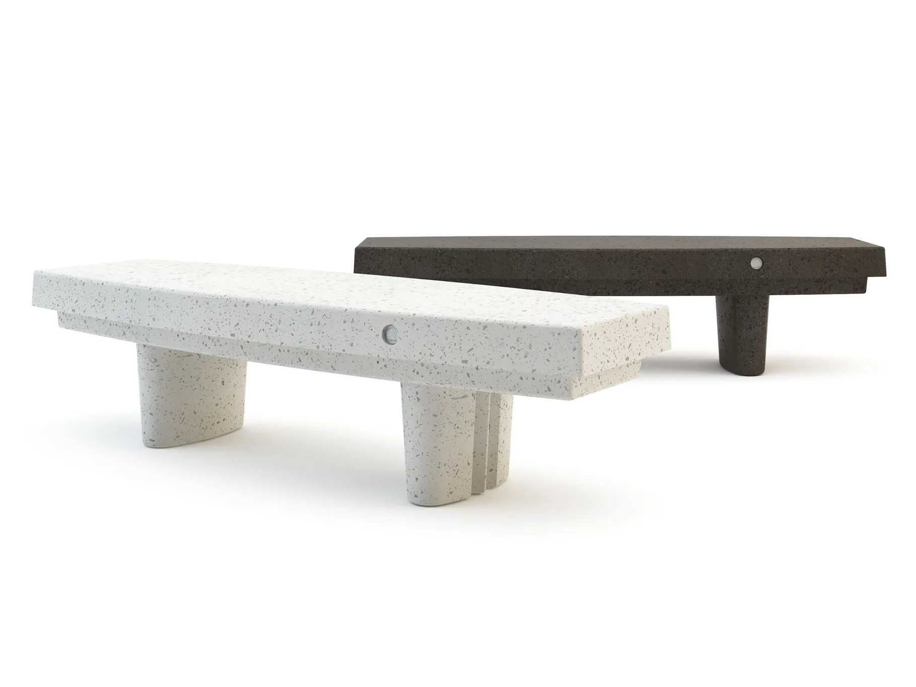 скамьягород " с более закругленной стороной и ножками с вертикальными канавками из белого или серого бетона или конгломерата мраморных камней.