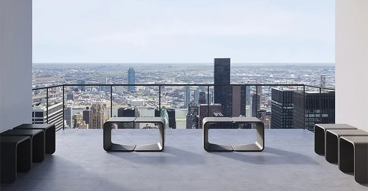 Spring - модульный стул для наружного применения из UHPC-сверхтонкого антрацитового или белого бетона с глянцевой или атласной защитной обработкой.