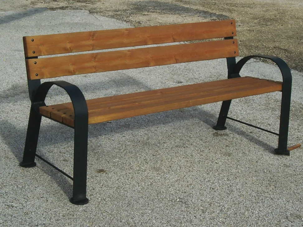 Calleja - скамья из сибирской лиственницы и стали с подлокотниками и спинкой.
