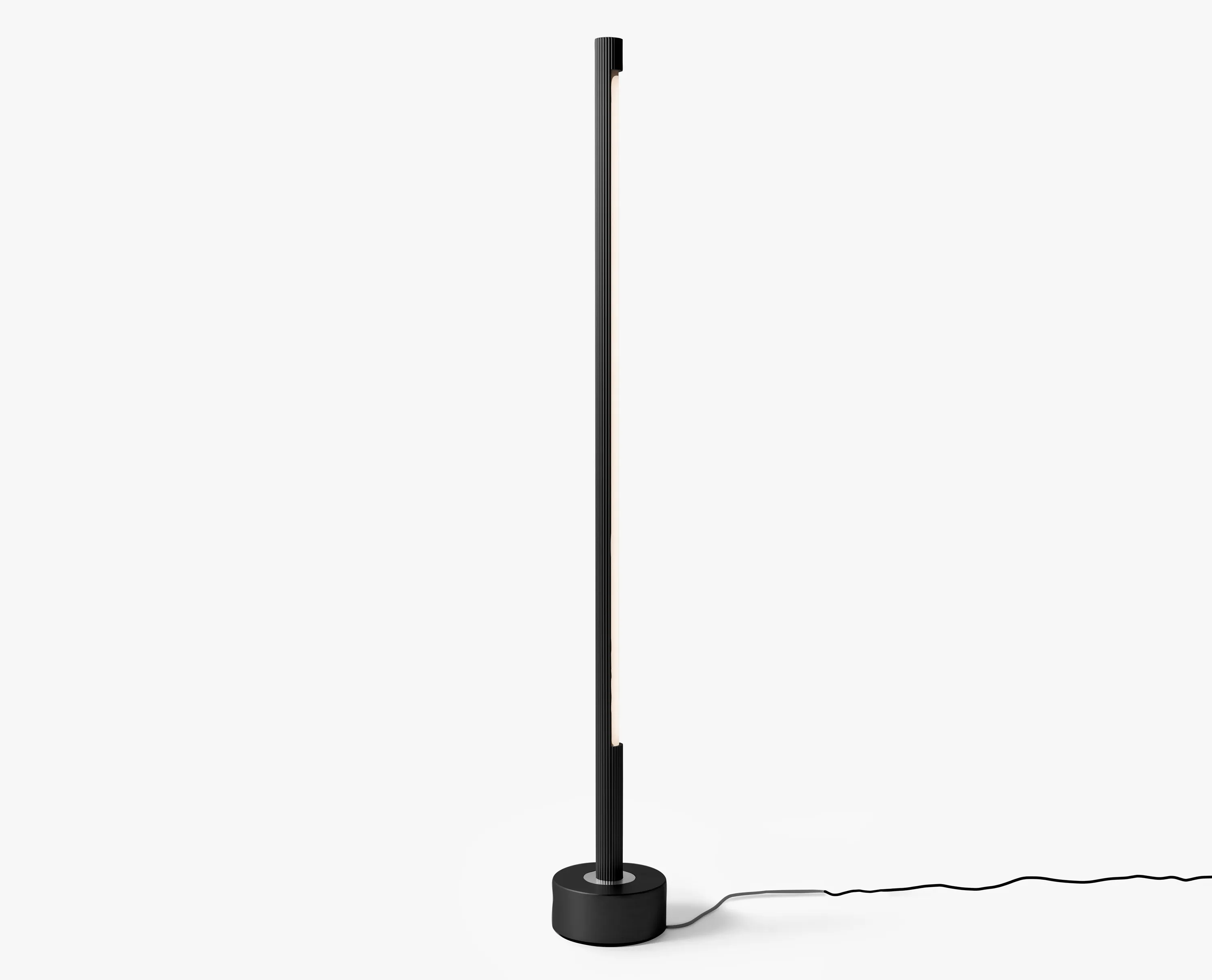 напольная лампа рассеянного света. Структура изготовлен из экструдированного алюминия с жидким покрытием (алюминиевая версия) или порошковым покрытием (черная версия). Стальная основа с алюминиевой крышкой и матовой деталью из нержавеющей стали. Опаловый акриловый диффузор. Встроенный светодиод.