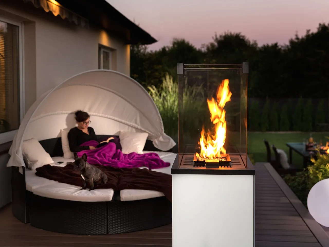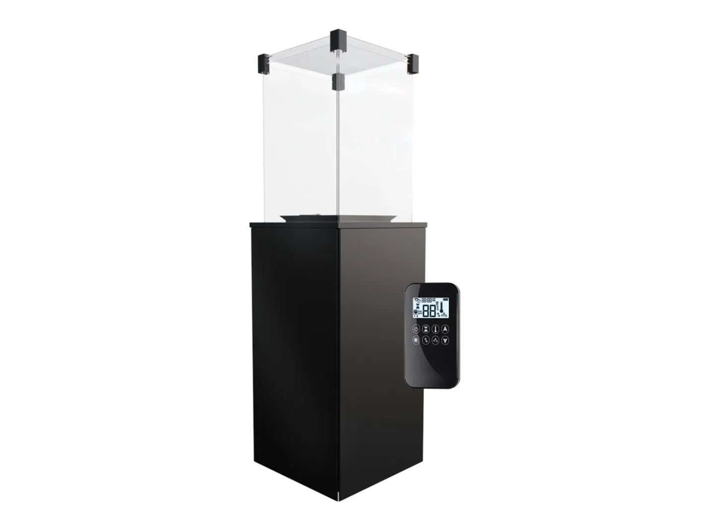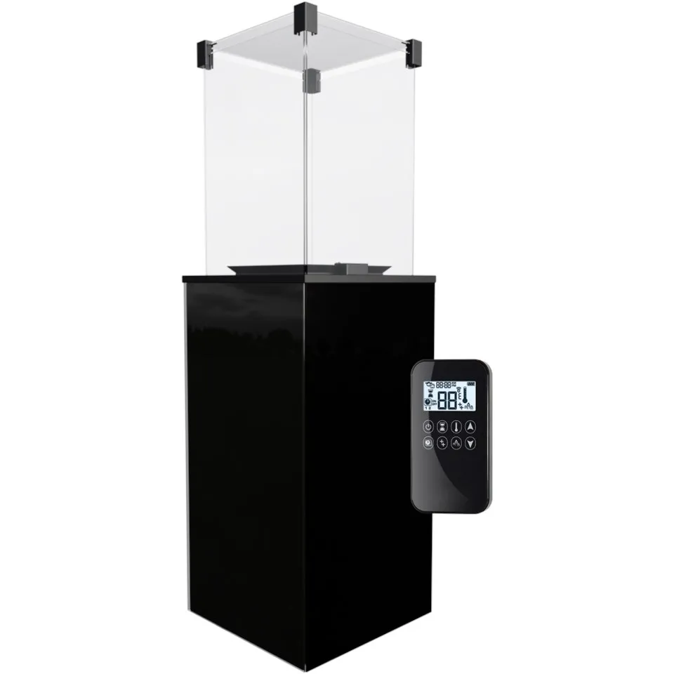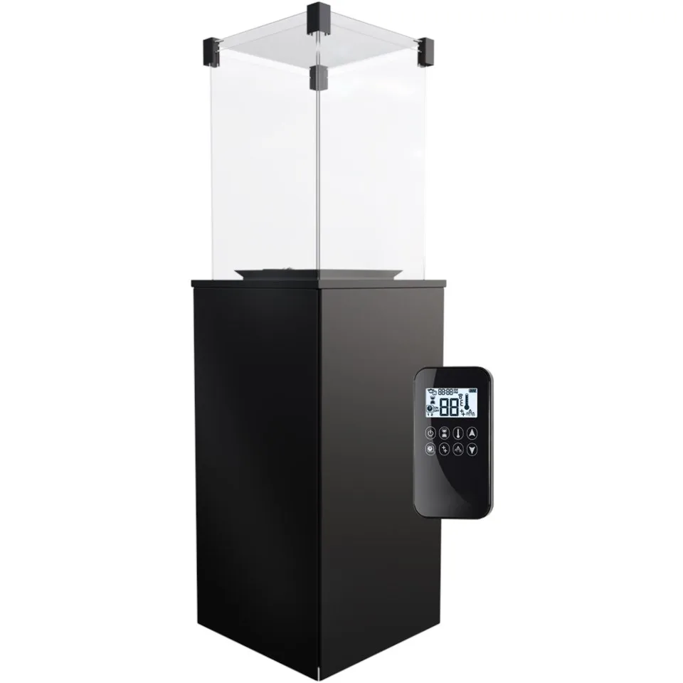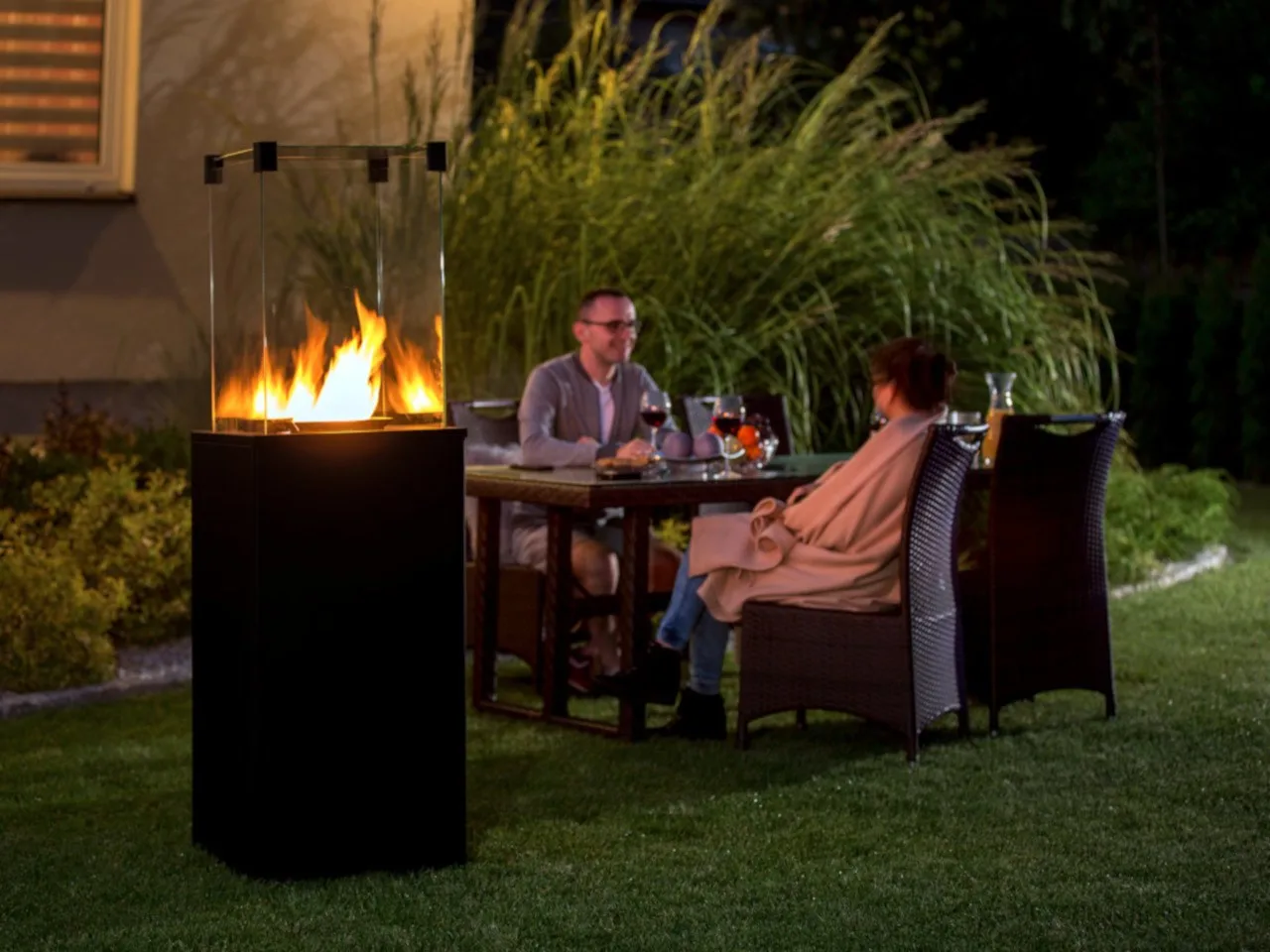патио это открытый газовый обогреватель, который обеспечивает тепло и свет везде, где вы хотите создать уникальную и уютную атмосферу. Его уникальная особенность - огонь, видимый с четырех сторон. Благодаря этому это уникальный газовый патио или садовый светильник. Он может работать на полной мощности, непрерывно до 30 часов. Готовый к подключению, он имеет все элементы, необходимые для начала работы. Все, что вам нужно, это газовый баллон. Нижняя часть газового нагревателя патио он отделан на выбор: черная сталь с порошковым покрытием, черные стеклянные панели, белые стеклянные панели или стеганые черные стеклянные панели.