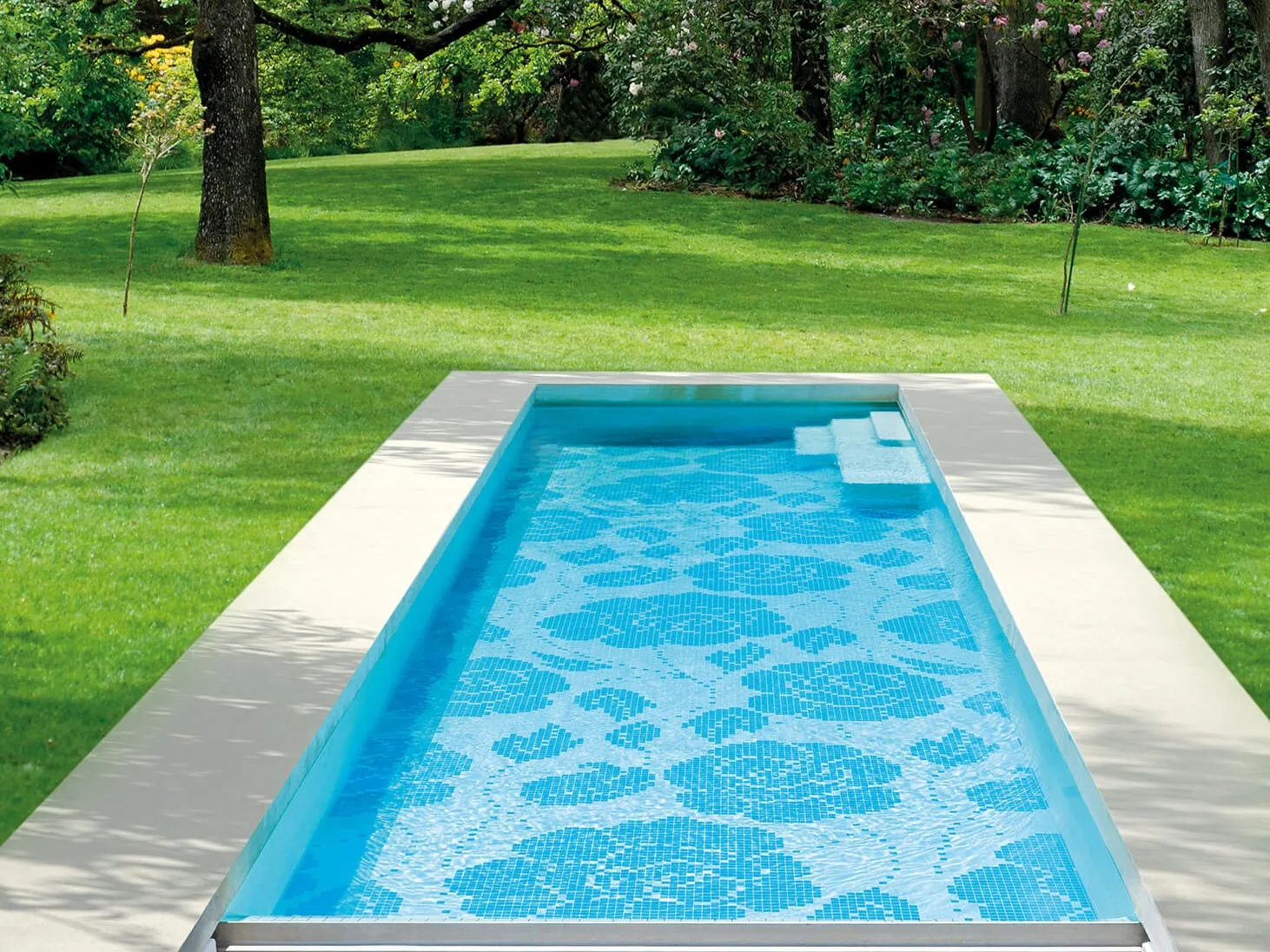 белый декор Закинтоса был разработан для украшения бассейнов. декор из стеклянной мозаики Bisazza, коллекция Vetricolor, плитка 20x20mm, компьютерная техника, дизайн Carlo Dal Bianco.