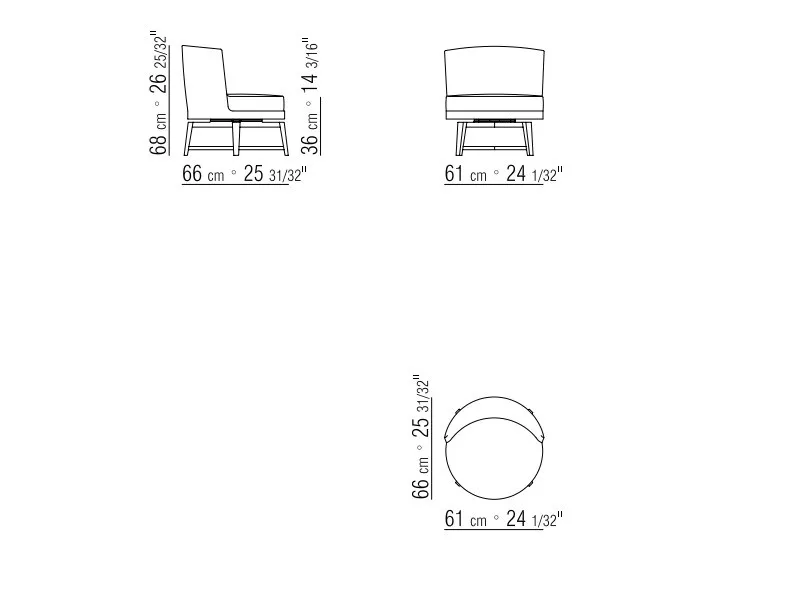 61x61xH66 cm - H seat: 34 cm * 61x66xH68 cm - H seat: 36 cm