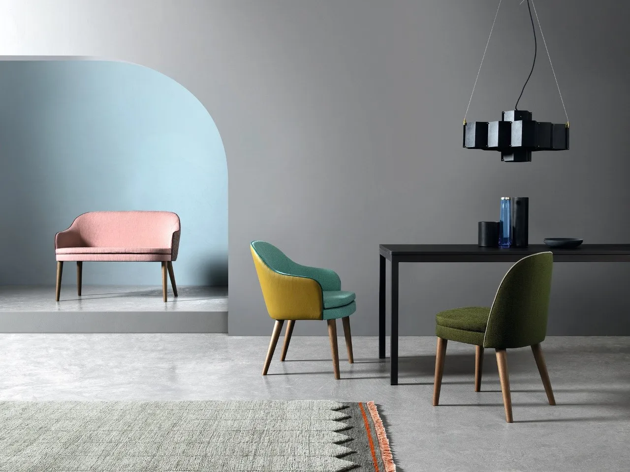 Carmen это система, которая включает в себя стулья, кресла, диваны, барные стулья, характеризующиеся сочетанием функциональности и эстетики. Тонкие деревянные ножки придают исключительную легкость и универсальность. Форма спинки уютная и удобная, вдохновленная классицизмом, но с ноткой, напоминающей современность 60-х годов.