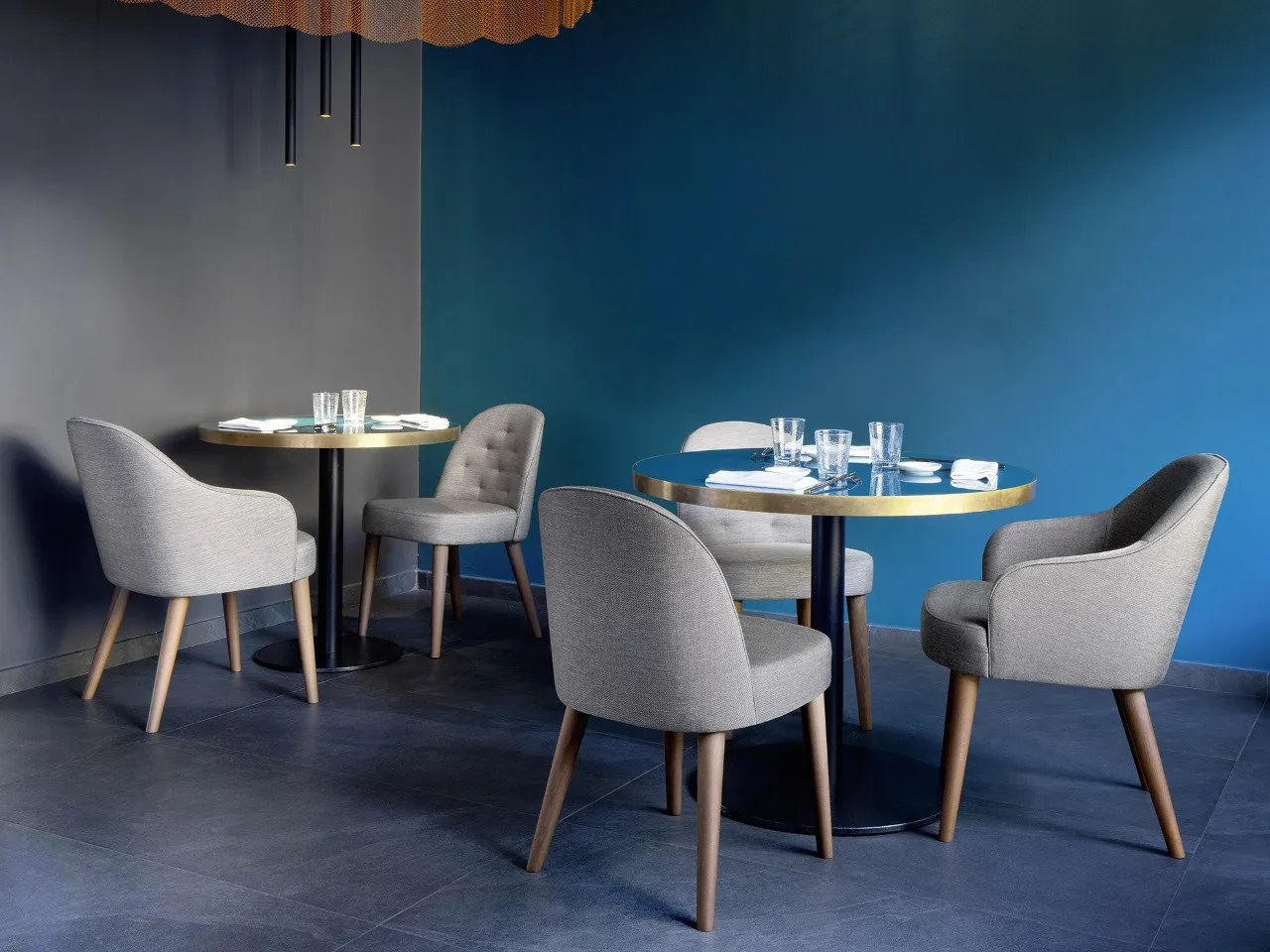 с простой структурой из бука и широким спектром решений, сочетающих тканевую или кожаную обивку и отделку древесины ноги, Carmen адаптируется к любой среде и проекту интерьера: отели, рестораны, бары до медицинских учреждений.