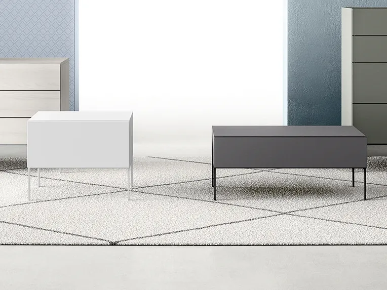 Lucky-это коллекция аксессуаров для спальной зоны, разработанная в сотрудничестве с Роберто Гоббо. серия включает прикроватные тумбочки и комоды разных размеров и отделки.