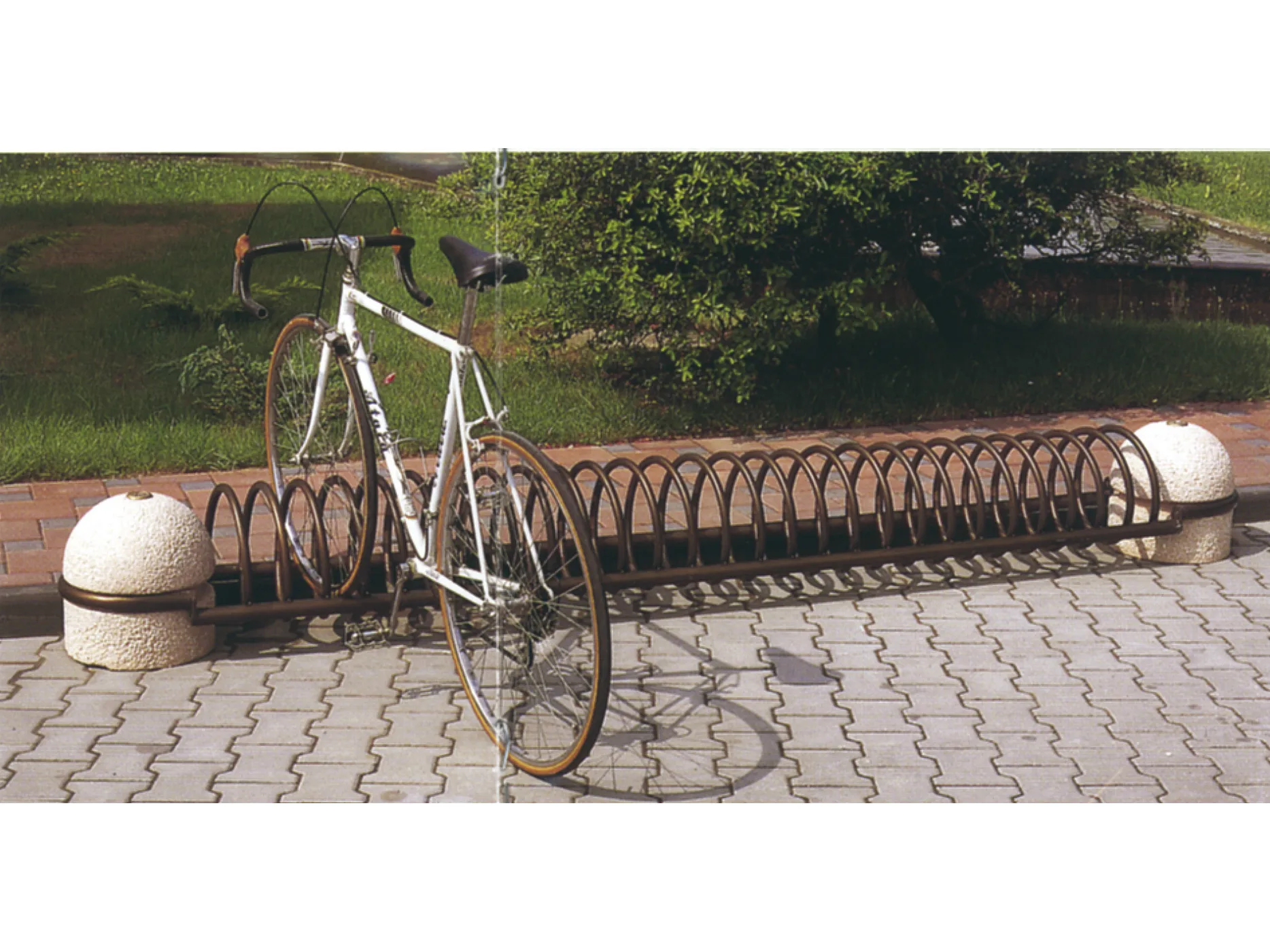 Superspirobike представляет собой велосипедную стойку из нержавеющей стали.размер: 320x38 см емкость: 9/17 цвет: кирпич, серый, гранит Вес кг: 160