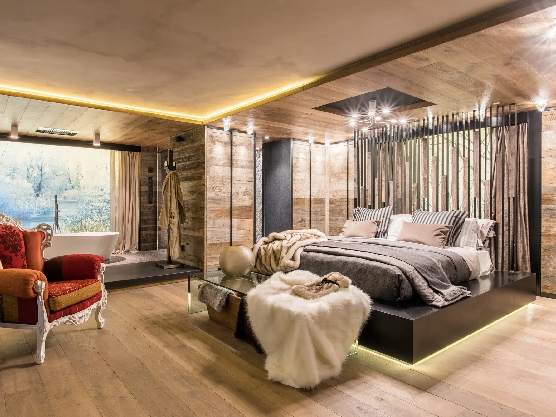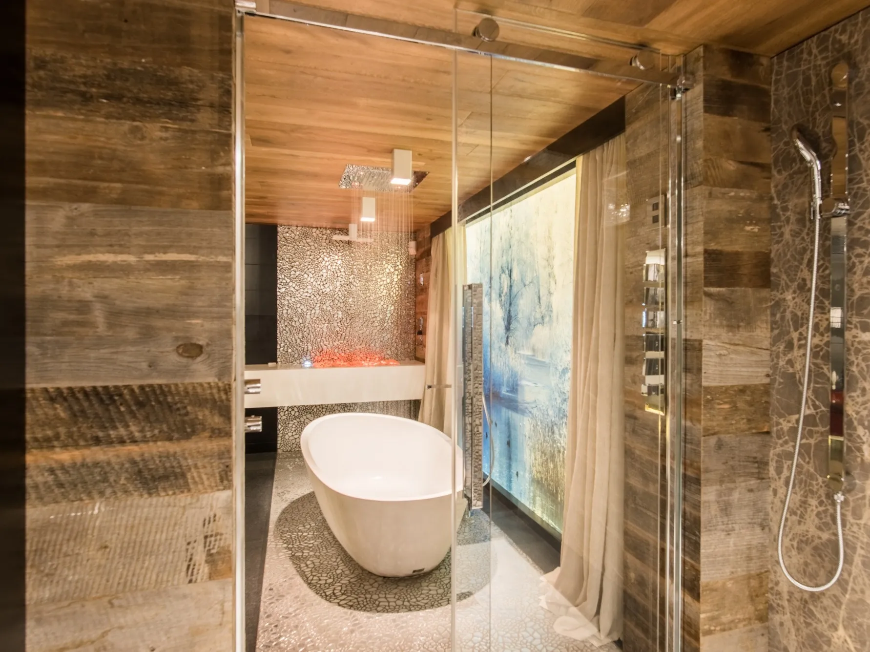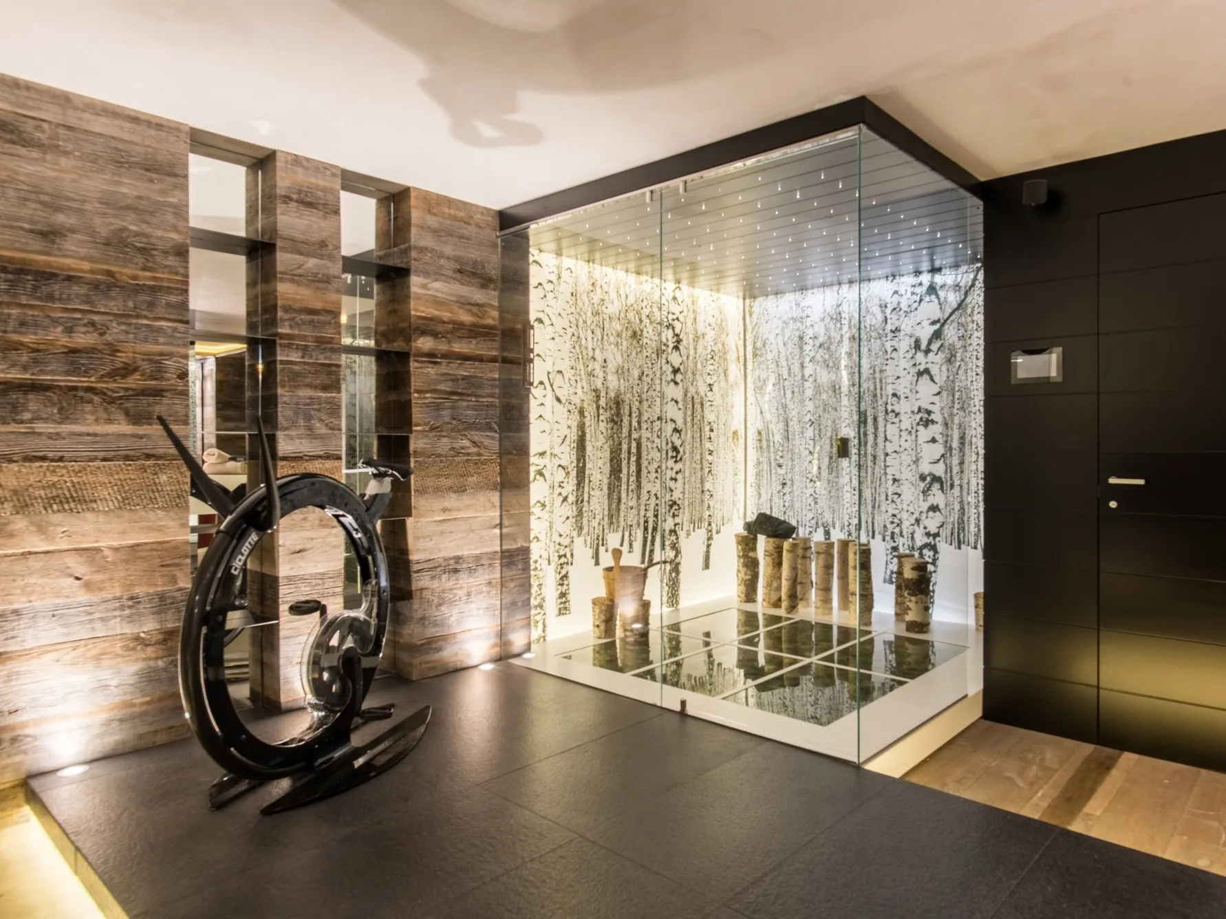 Кранс Монтана стены этого великолепного выставочного зала известного архитектора в Кранс Монтана (Швейцария) были облицованы античными еловыми панелями до патины. Типичная сине-серая окраска определяется процессом окисления солнечного света.