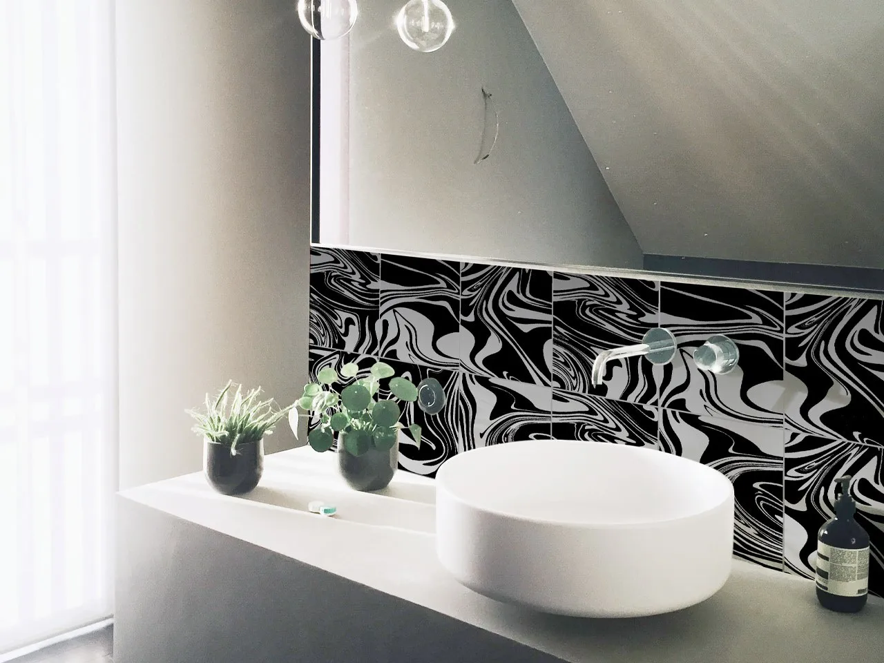 Liquid - это керамическое покрытие из красной пасты с графикой, создающей трехмерную иллюзию.